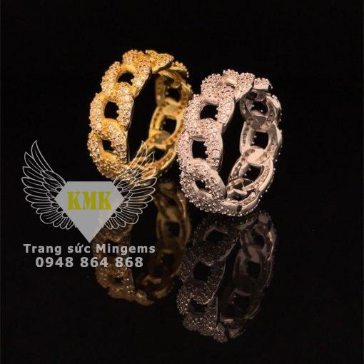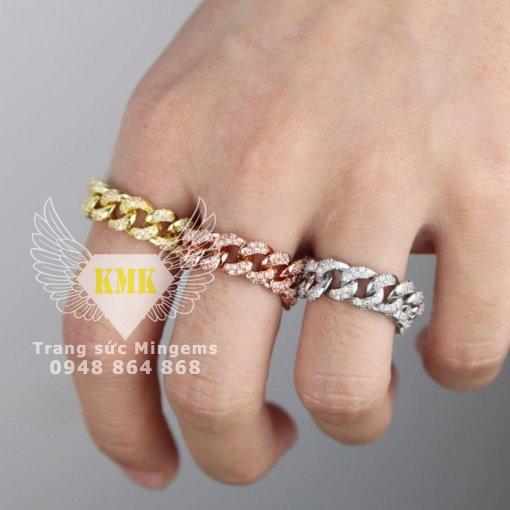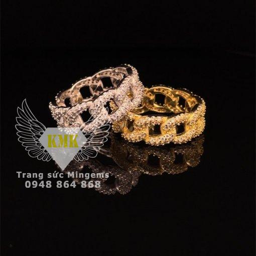 Nhẫn dây xích nam đính FULL kim cương moissanite vàng 18k quá lạ và độc đáo, lấy ý tưởng từ lắc tay vàng CUBAN Mingems nhẫn này đẳng cấp và rất sang trọng.