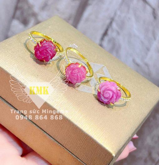 Nhẫn Hoa Hồng vàng 18k được tạc chạm khắc từ Ruby Đỏ thiên nhiên rất phù hợp với hình ảnh Bông Hoa Hồng ngoài đời thực rất đỏ và đẹp, tượng trưng cho tình cảm đôi lứa, hướng tới sự vĩnh bền, vĩnh cửu của tình yêu mà các anh chàng dành tặng cho 1 nửa của mình vào dịp trọng đại nhất.