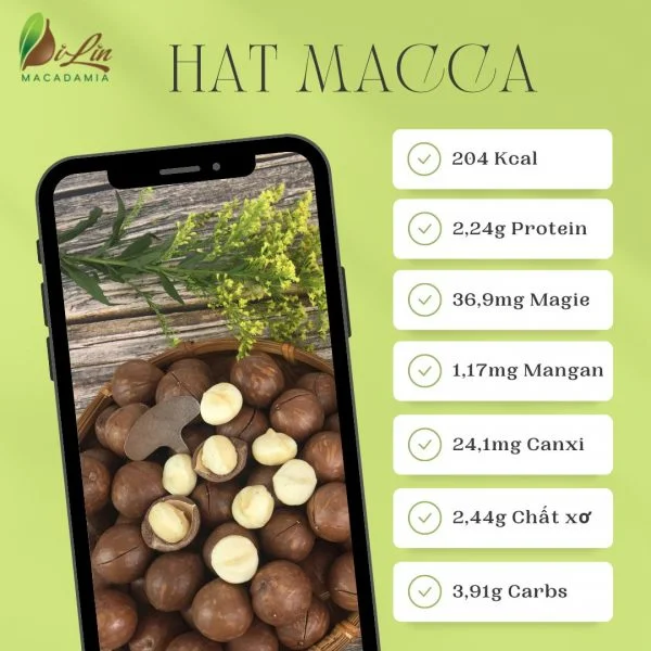 Macca được đánh giá là một loại hạt có nhiều giá trị dinh dưỡng. Là nguyên liệu chính trong các món ăn ngon miệng, lại còn bổ sung thêm nhiều chất xơ, vitamin A, chất béo, .... Tốt cho trẻ em, phụ nữ mang thai, Đặc biệt Mắc ca còn là loại hạt ưa thích của các chị em muốn ăn Kiêng theo chế độ, giảm cân một cách lành mạnh và khoa học. Macca còn được thay thế cho các món ăn vặt. Khi bổ sung lượng Macca vừa đủ bạn sẽ không còn buồn miệng nhớ tới các món ăn vặt nữa.