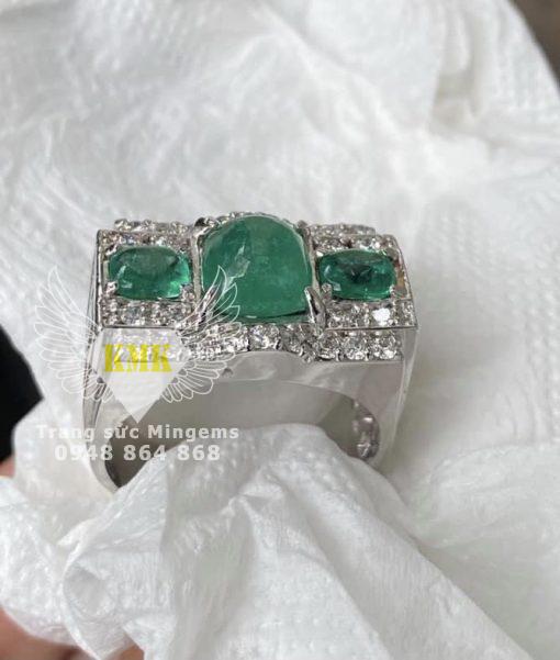 Nhẫn Nam Ngọc Lục Bảo vàng 18k chất lượng nhất tại Mingems, đá quý thiên nhiên 100% giám định. Nhẫn kết hợp kim cương tấm thiên nhiên sang trọng, đẳng cấp cao.