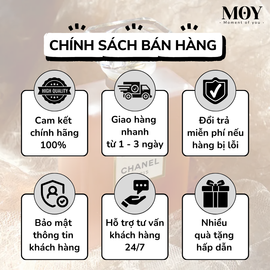 THÔNG TIN THƯƠNG HIỆU: MOY Perfume Website: moy.com.vn Địa chỉ: MOY Perfume, 45/14A Trần Thái Tông, Phường 15, Tân Bình, Hồ Chí Minh Số điện thoại: 0967548393 - 0922701803 Email: moy.cosmetic.2024@gmail.com