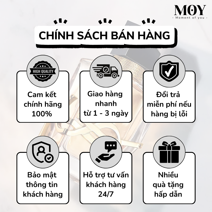 THÔNG TIN THƯƠNG HIỆU: MOY Perfume Website: moy.com.vn Địa chỉ: MOY Perfume, 45/14A Trần Thái Tông, Phường 15, Tân Bình, Hồ Chí Minh Số điện thoại: 0967548393 - 0922701803 Email: moy.cosmetic.2024@gmail.com