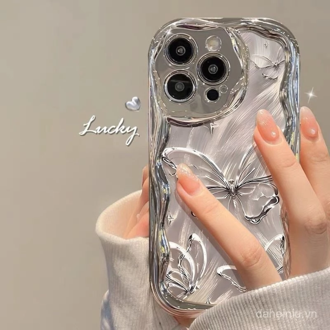Ốp lưng iPhone mạ bạc bươm bướm