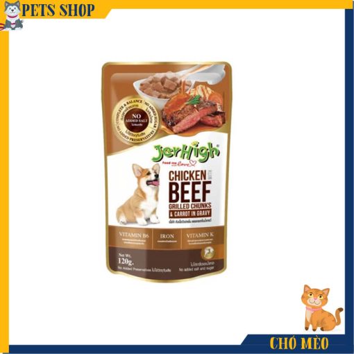 Pate cho chó vị bò gà nướng sốt cà rốt JERHIGH Chicken Beef Grilled Chunks Carrot In Gravy