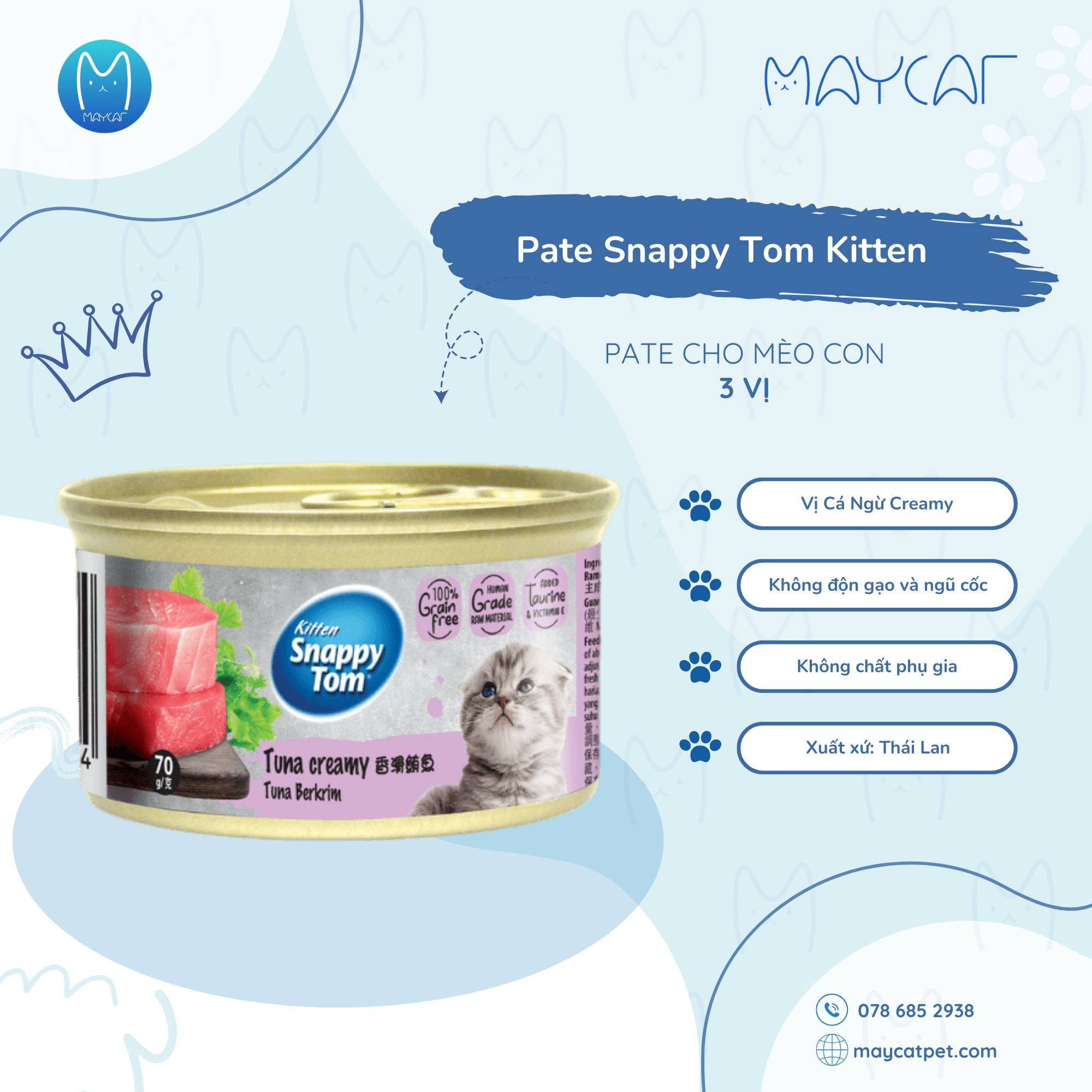 𝐏𝐚𝐭𝐞 𝐒𝐧𝐚𝐩𝐩𝐲 𝐓𝐨𝐦 𝐊𝐢𝐭𝐭𝐞𝐧 - Hộp 70g - Dành Cho Mèo Con