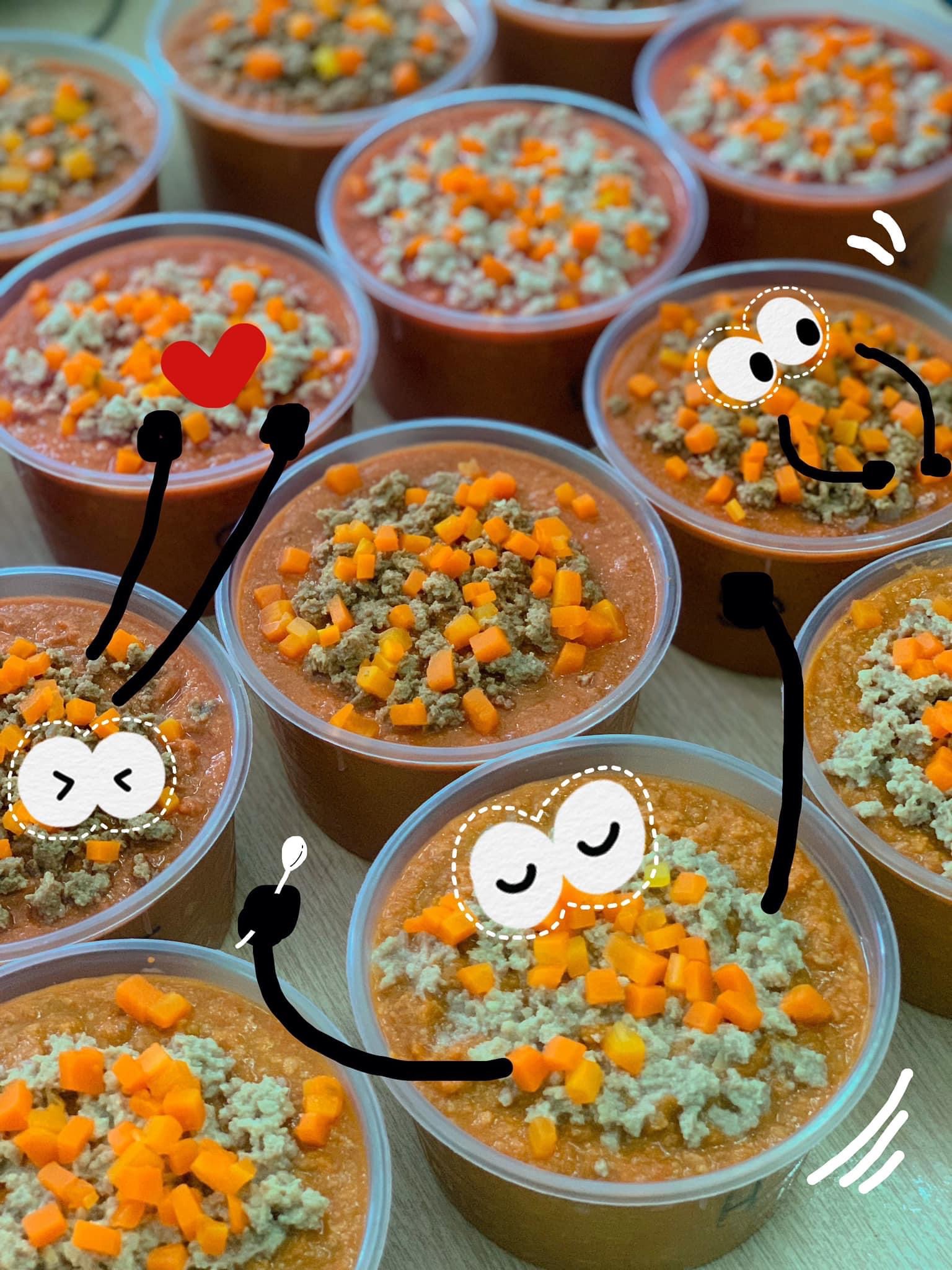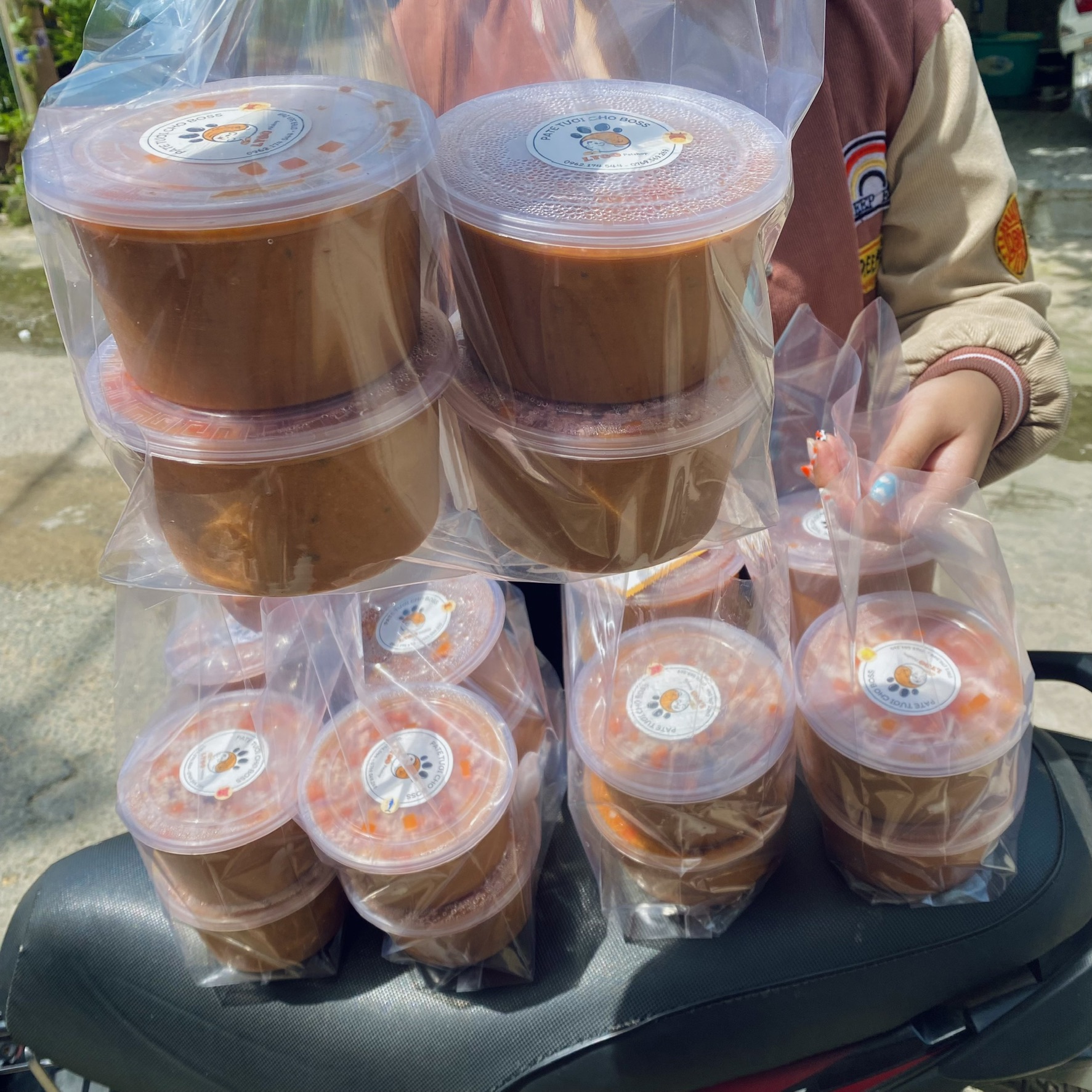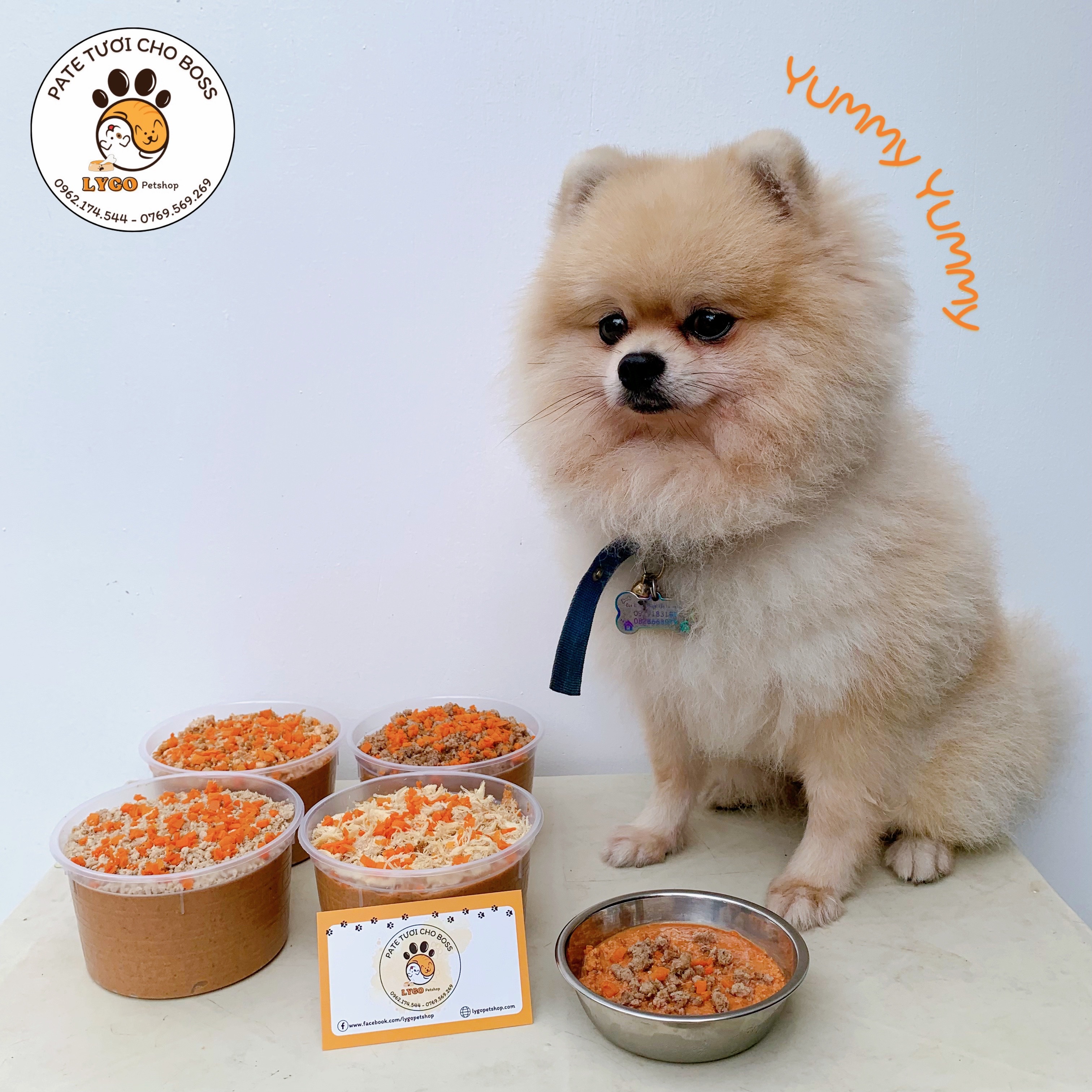 Thành phần pate tươi: (gà/cá/heo,bò) bí đỏ, cà rốt, củ dền, yến mạch, gan gà, vitamin, canxi