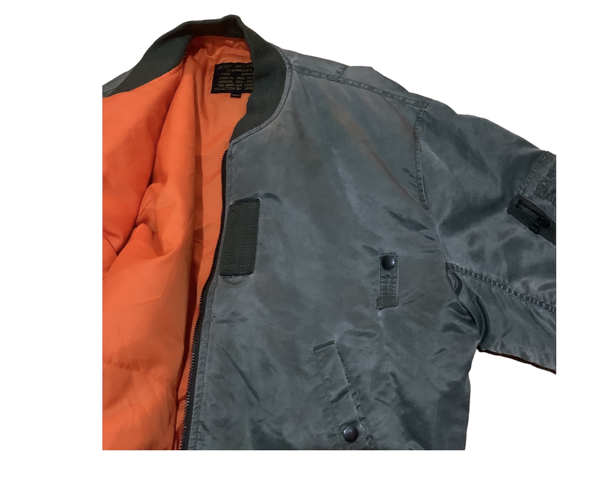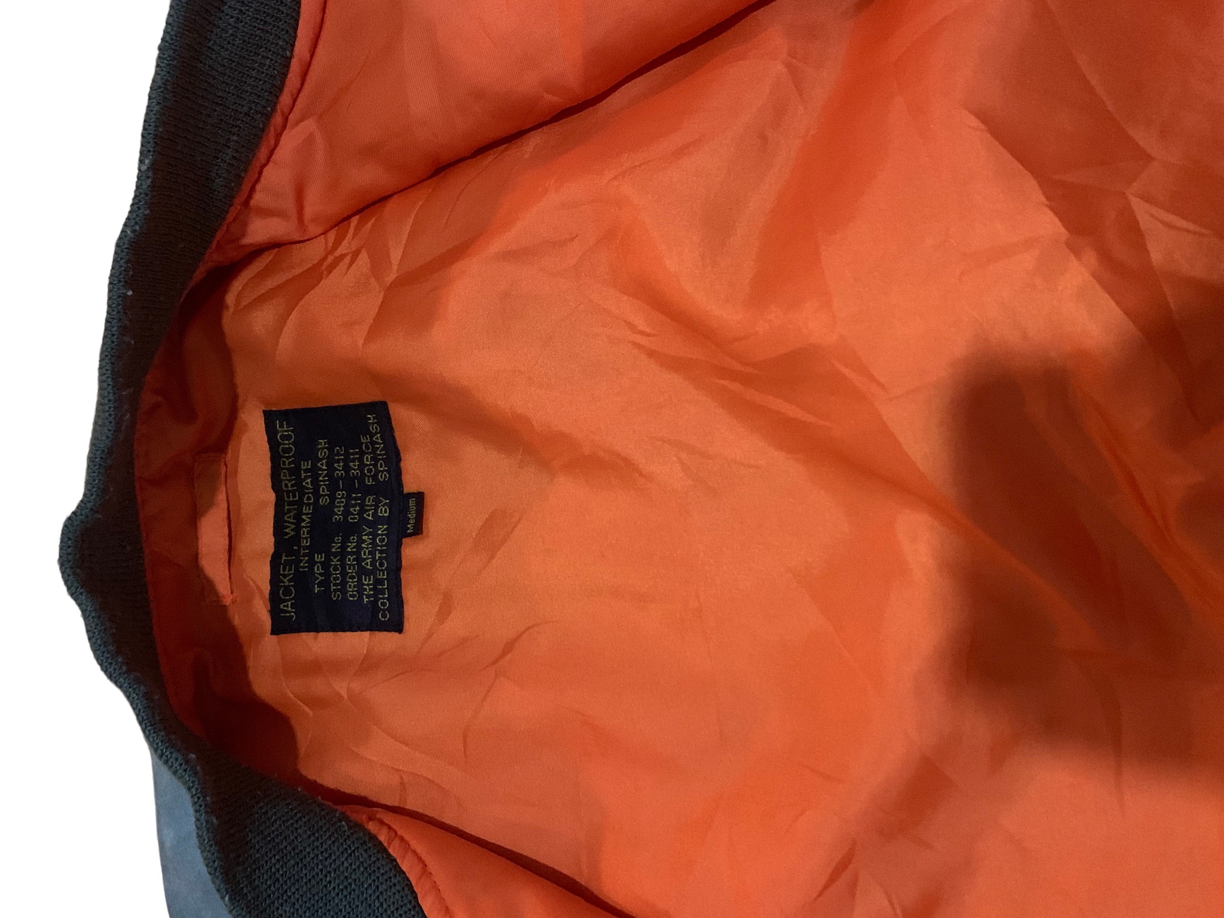 - Áo khoác Pilot Bomber chất liệu vải dù gió 2 lớp lót bông. Thiết kế mặt trong là lớp xa – tanh màu cam có thể lộn trái ra ngoài với mục đích cứu hộ hay tình trạng khẩn cấp.