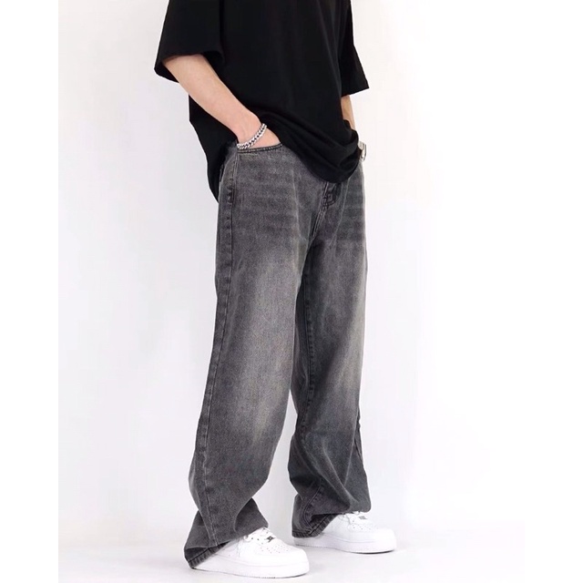 Quần Bò Jeans Ống Rộng Màu Xám Khói