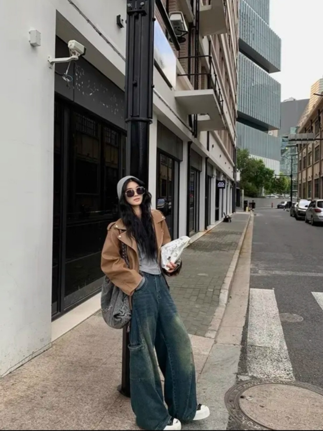 Đối với những cô nàng có thân hình cao ráo, quần jean ống rộng sẽ giúp cân đối tỷ lệ cơ thể.