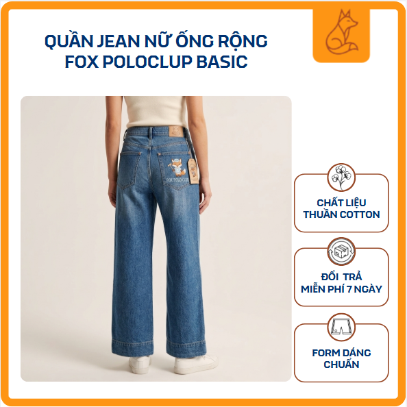 Quần Jean Nữ Ống Rộng Thêu Cáo Fox Polo Club QJN2007