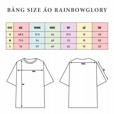 Lưu ý: Áo Rainbow Glory là form rộng mặc thoải mái các bạn không cần up size trừ trường hợp thích mặc form oversize và qua mông nhiều. Những trường hợp có thân hình đặc biệt có thể inbox qua page để bên shop hỗ trợ tư vấn nhé.
