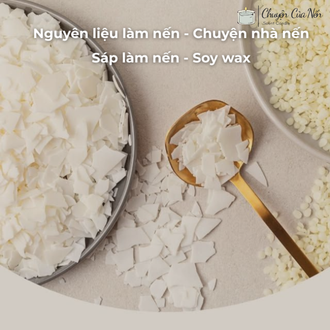 Sáp đậu nành là loại sáp thực vật tự nhiên, được làm từ dầu đậu nành đã qua xử lý hydro hóa. Đây là thành phần phổ biến và được ưa chuộng trong sản xuất nến thơm nhờ đặc tính thân thiện với môi trường và an toàn cho sức khỏe.So với sáp paraffin gốc dầu mỏ, sáp đậu nành cháy sạch hơn, ít tạo khói đen và muội than, giúp không khí trong lành hơn. Nến làm từ sáp đậu nành cũng có thời gian cháy lâu hơn và khả năng giữ mùi hương tốt, mang lại trải nghiệm thư giãn tinh tế và bền vững. Sáp này còn dễ dàng làm sạch nếu chẳng may bị đổ ra.