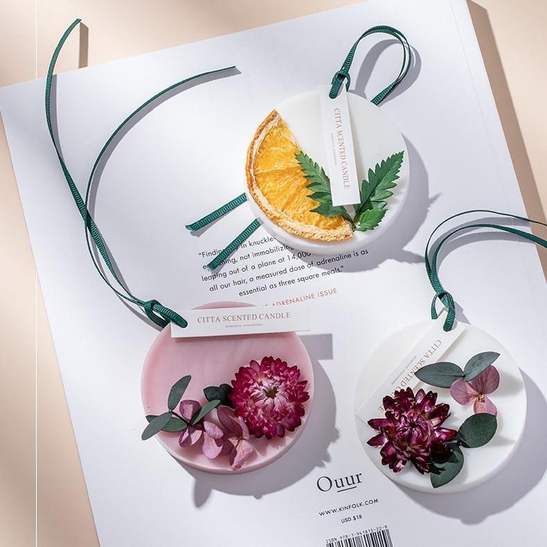 🏵️ Sáp thơm dạng hình tròn, được trang trí hoa khô thật