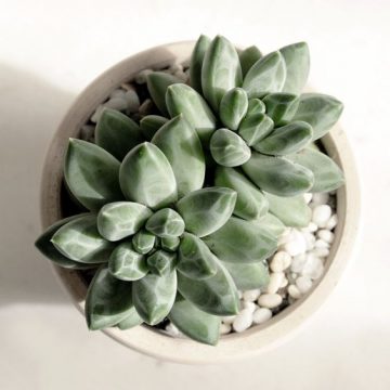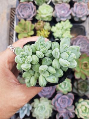 Sen đá kim cương trắng là loài cây thuộc chi Echeveria nằm trong họ Crassulaceae, bộ Senecioneae. Chúng có nguồn gốc từ Mexico, châu Mỹ, châu Úc và châu Phi. Lí do loài cây này có cái tên như vậy là bởi lá của chúng mọng nước, dày, cứng cáp đặc biệt hình dáng góc cạnh trông như những thỏi kim cương thô chưa qua tinh luyện.