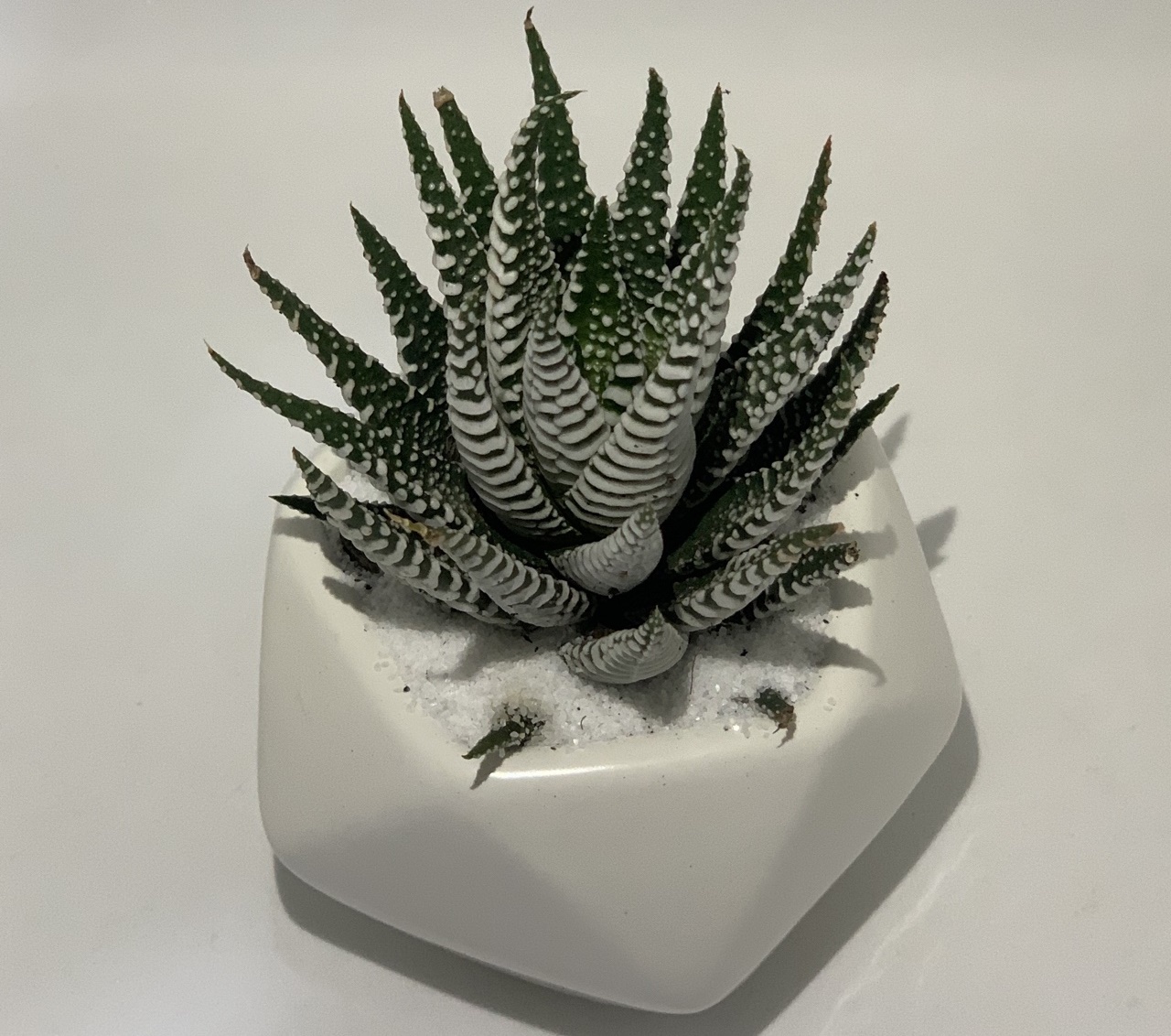 Cây Sen Đá Móng Rồng – Hay còn gọi là Sen Móng Rồng thuộc họ nha đam (Ý). Cây cũng đã khá quen thuộc với người dân Việt Nam từ lâu. Có hình dạng bắt mắt, những vân trắng độc đáo, cộng thêm dễ phối trong trang trí, lại dễ chăm sóc nên càng ngày nó càng được ưa chuộng hơn. Cây còn mang ý nghĩa về sự đùm bọc, che chở, may mắn và muốn giữ quan hệ bền lâu.