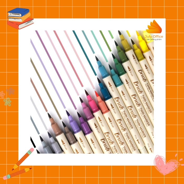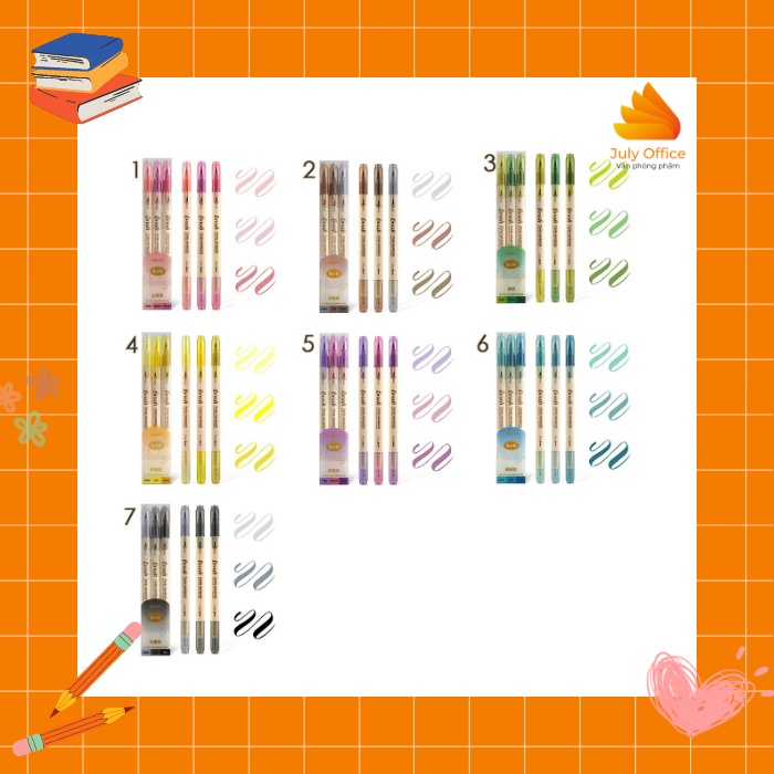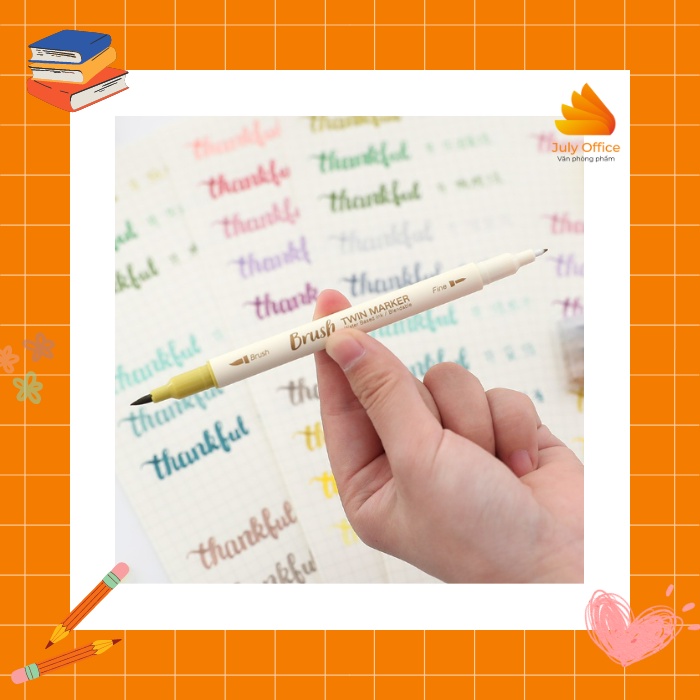 🍀Set 3 bút brush màu với thiết kế 2 đầu trang trí sổ tay, bullet journal