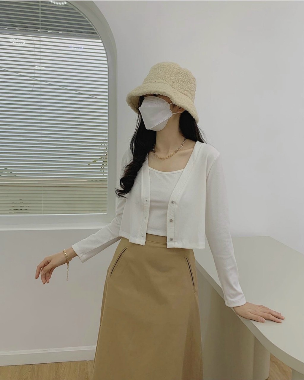 SET 3 MÓN : KHOÁC CROP TD KÈM CROP 2S + CHÂN VÁY NUDE