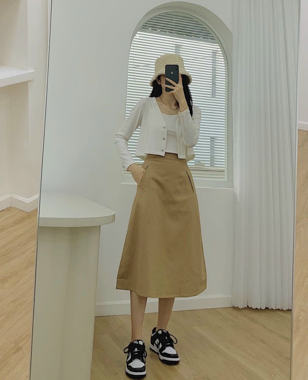 SET gồm có một chân váy chữ A , một áo khoác nhẹ ngoài và một áo hai giây