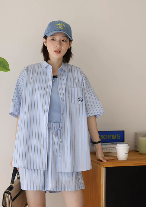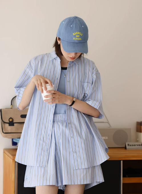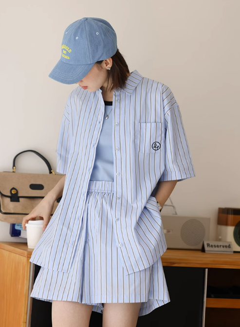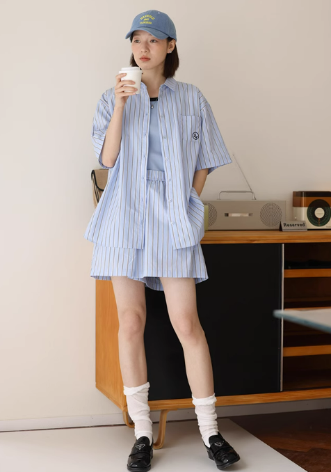 Sản phẩm: Set Bộ Sơ Mi Sọc Tay Ngắn | Unnie Sơ Mi