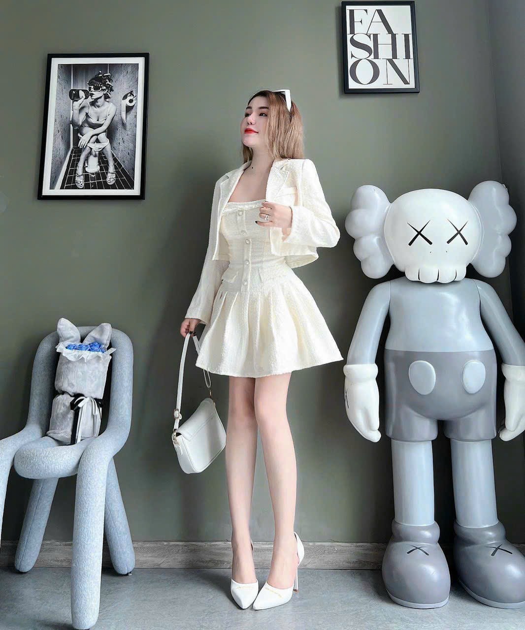 SET ĐẦM ỐNG DẠ TRẮNG TƯA XẾP LY KÈM KHOÁC CROP