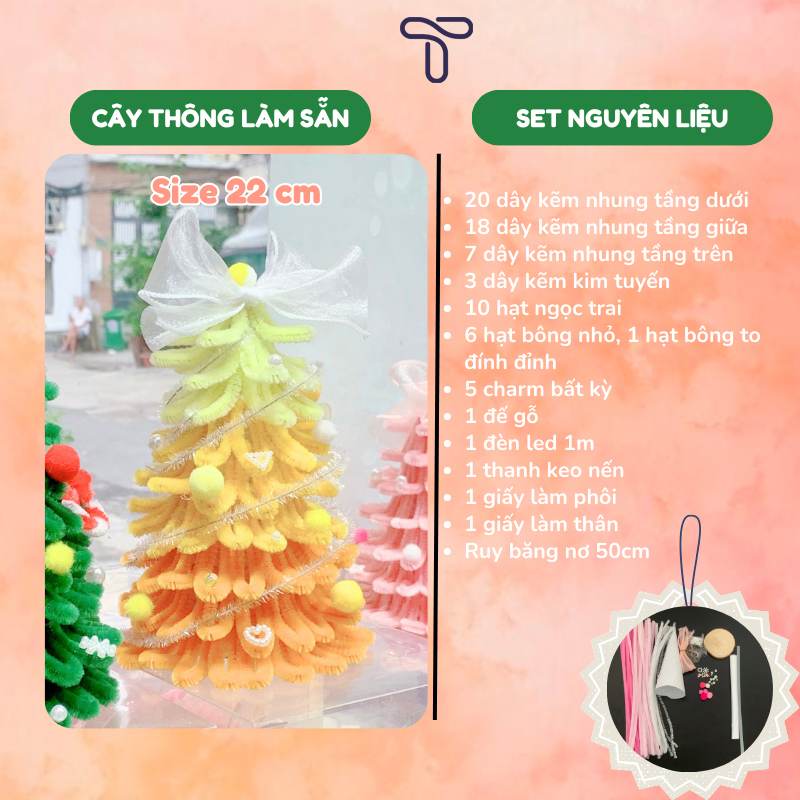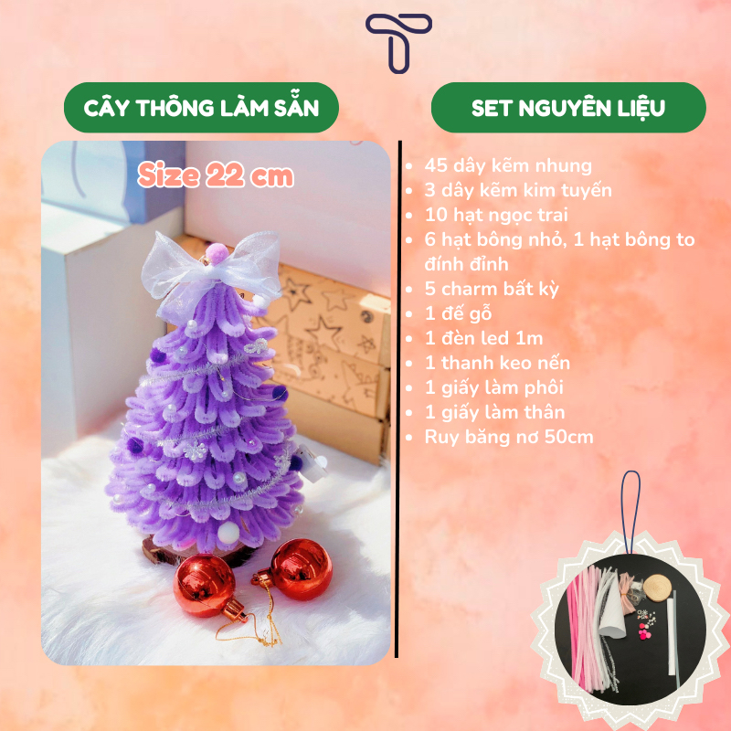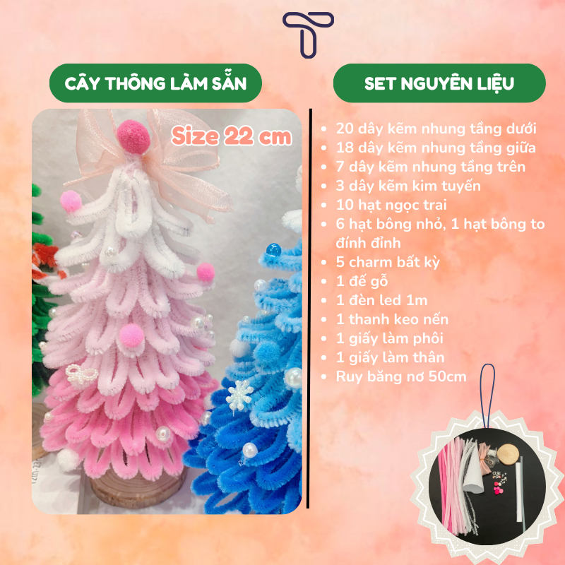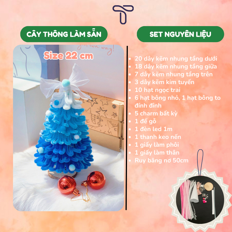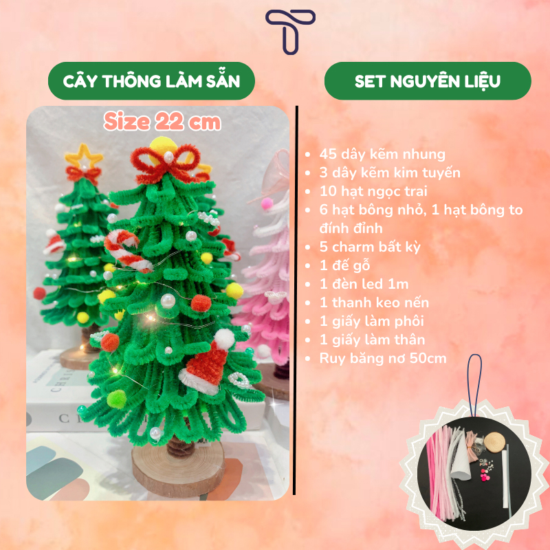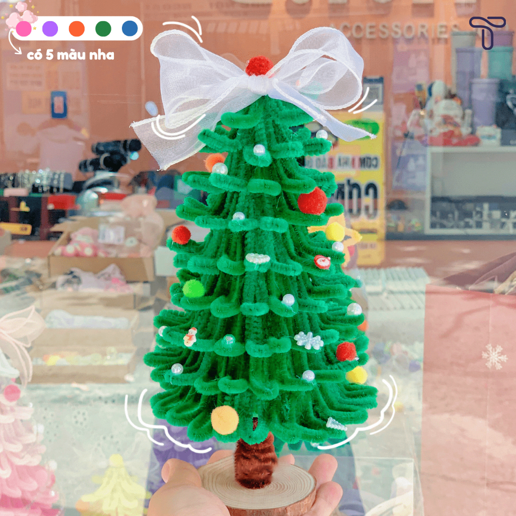 Set Nguyên Liệu Cây Thông Mini 22cm Handmade Làm Từ Kẽm Nhung