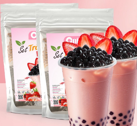 Set nguyên liệu pha trà sữa dâu thành phẩm 30 35 ly
