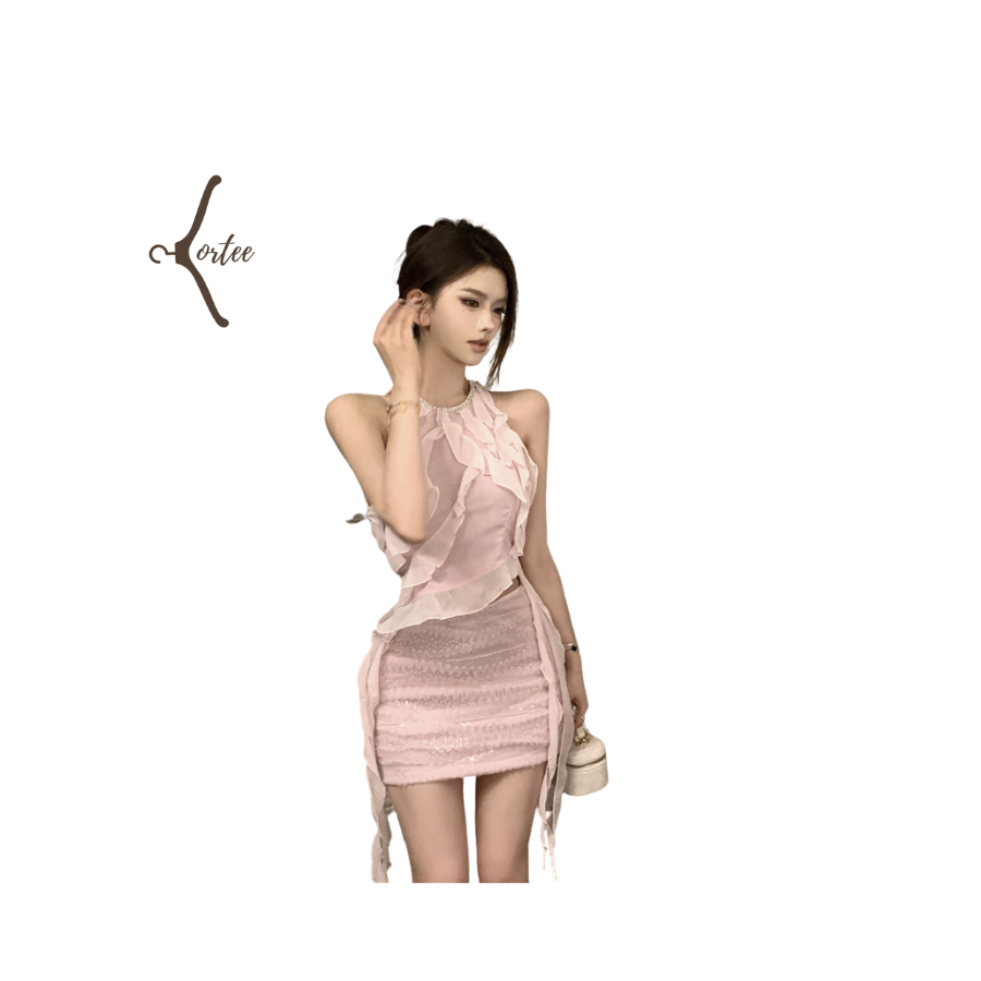 Set nữ phong cách Pháp áo yếm voan áo yếm mùa hè ôm hông váyngắn váy hai mảnh