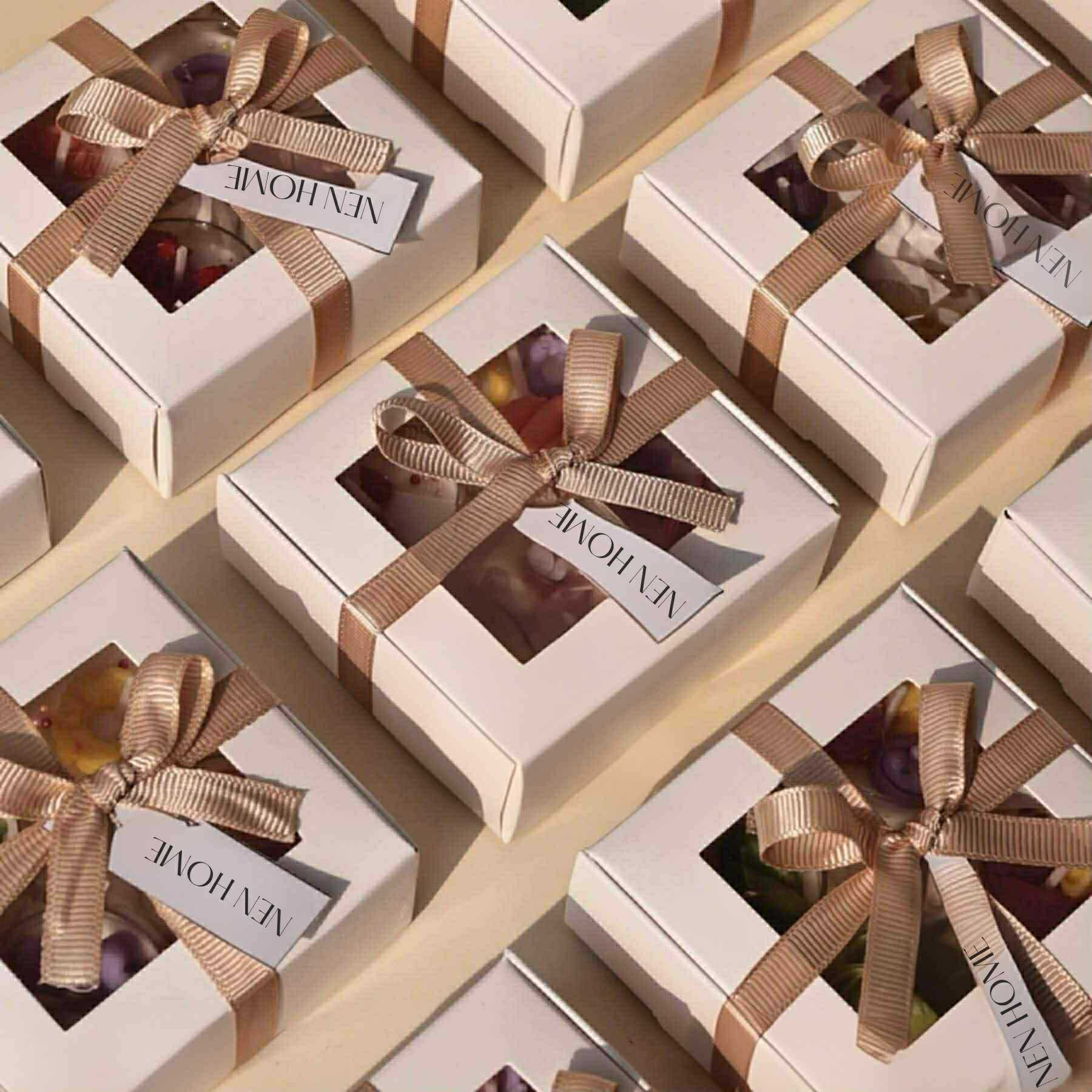 Đóng gói: Hộp quà màu kem, cửa sổ mica trong suốt, thắt ruy băng và tag thương hiệu “NEN HOME”