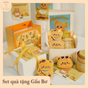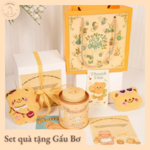 Thiết kế hộp quà dễ thương phong cách Hàn Quốc, tông vàng ấm áp với chủ đề Gấu Bơ.