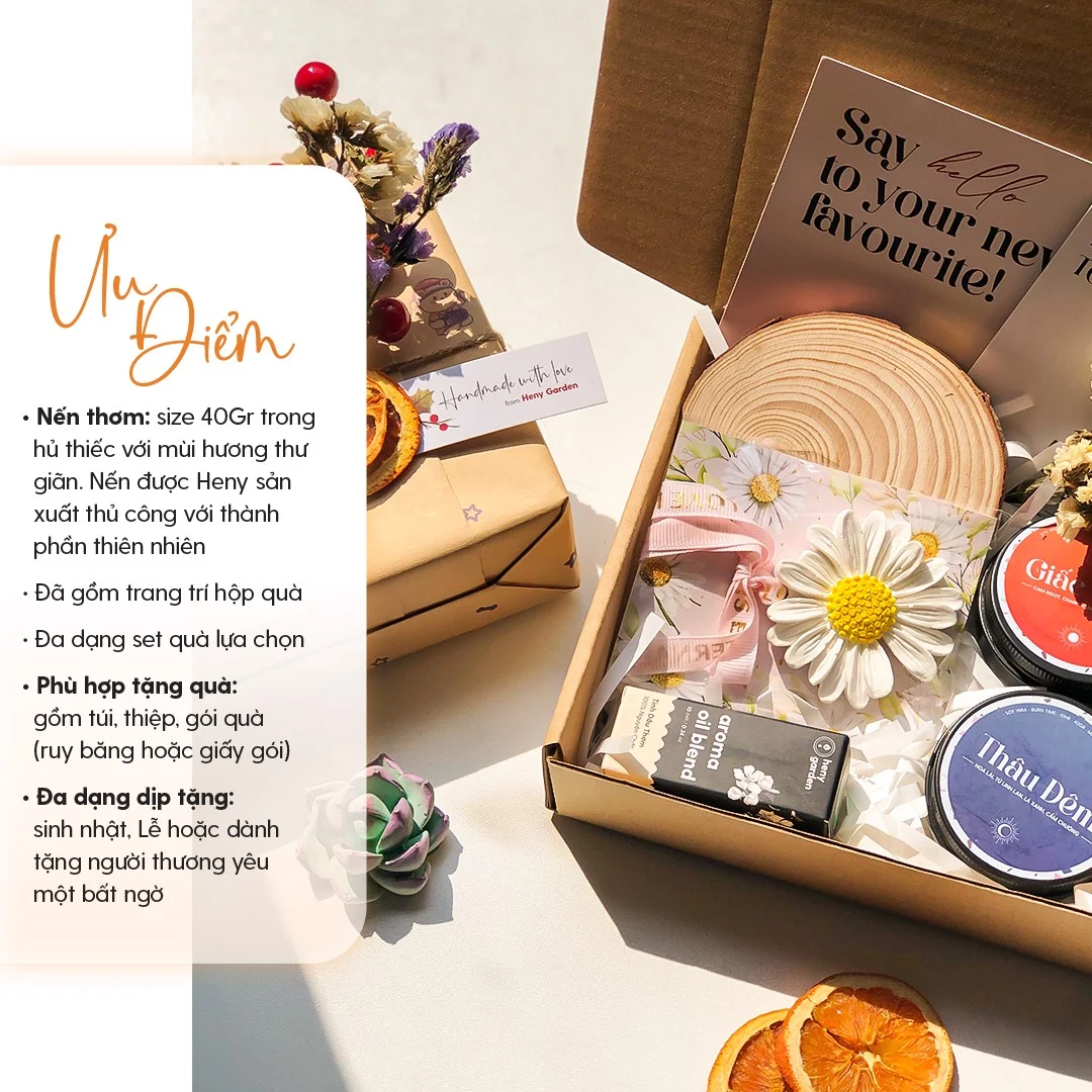 Mua quà tặng sinh nhật cho bạn trai bạn gái ở đâu là một câu hỏi nhiều bạn quan tâm? Bạn có thể tìm mua các set quà tặng sinh nhật bạn trai gồm: nến thơm, tinh dầu, xịt thơm, đá khuếch tán,... tại cửa hàng của Heny Garden.