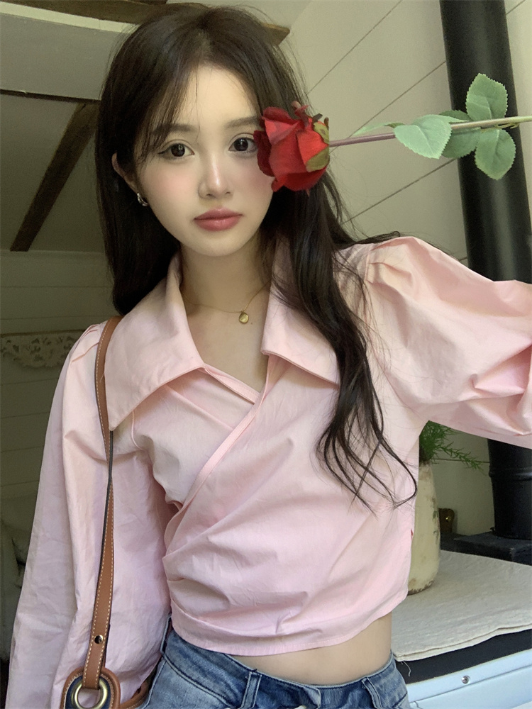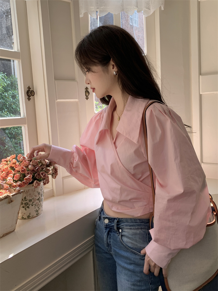 Sản phẩm: Sơ Mi Dáng Ngắn Cổ Chéo Tay Phồng | Unnie Sơ Mi
