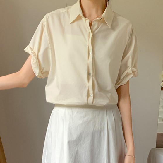 Sản phẩm: Sơ Mi Trơn Tay Ngắn Form Rộng Dáng Xinh | Unnie Sơ Mi
