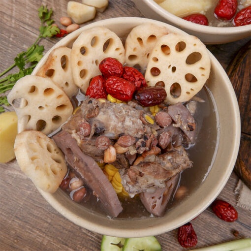Súp sườn heo hầm củ sen là sự kết hợp của củ sen, sườn heo với đậu phộng tạo nên một món súp cổ điển của Trung Quốc. Nó tạo ra một món súp phong phú, đầy hương vị và khiến bạn hài lòng.