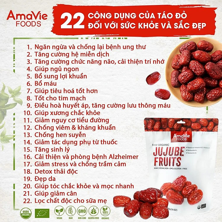 Thành phần: 100% táo đỏ khô hữu cơ.