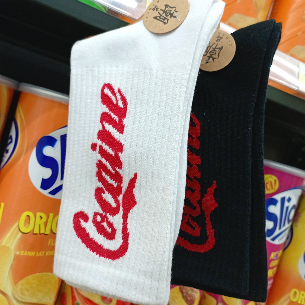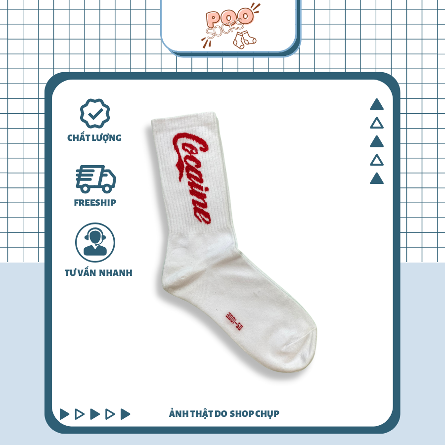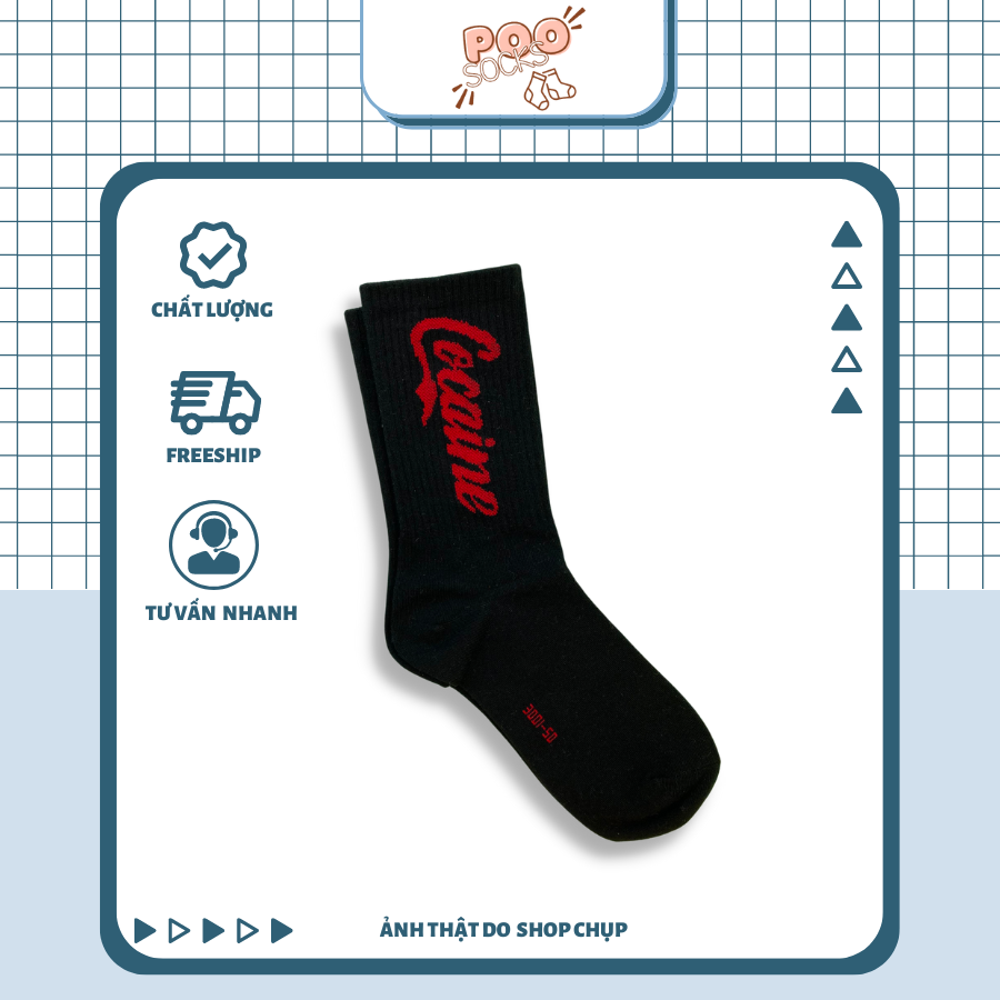 - Tên sản phẩm: Tất Vớ Cổ Cao Unisex Nam Nữ POOSOCKS In Chữ Cocaine Cotton Cao Cấp Phong Cách Đường Phố Cá Tính