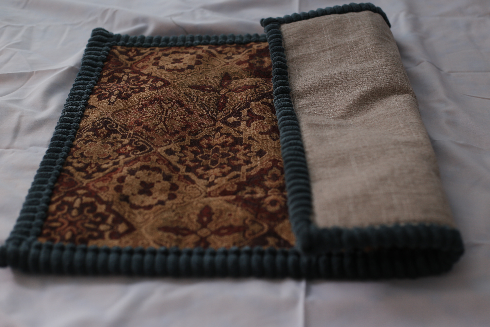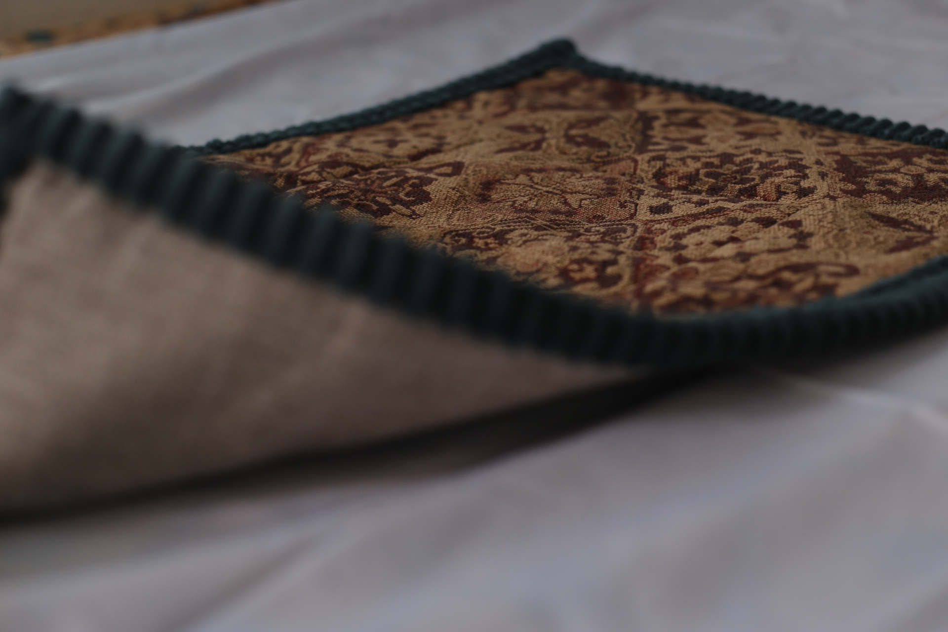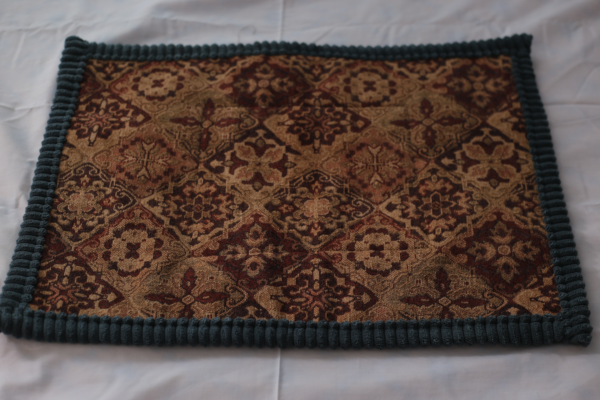 Thảm lau chân, hoa văn thổ cẩm có viền.