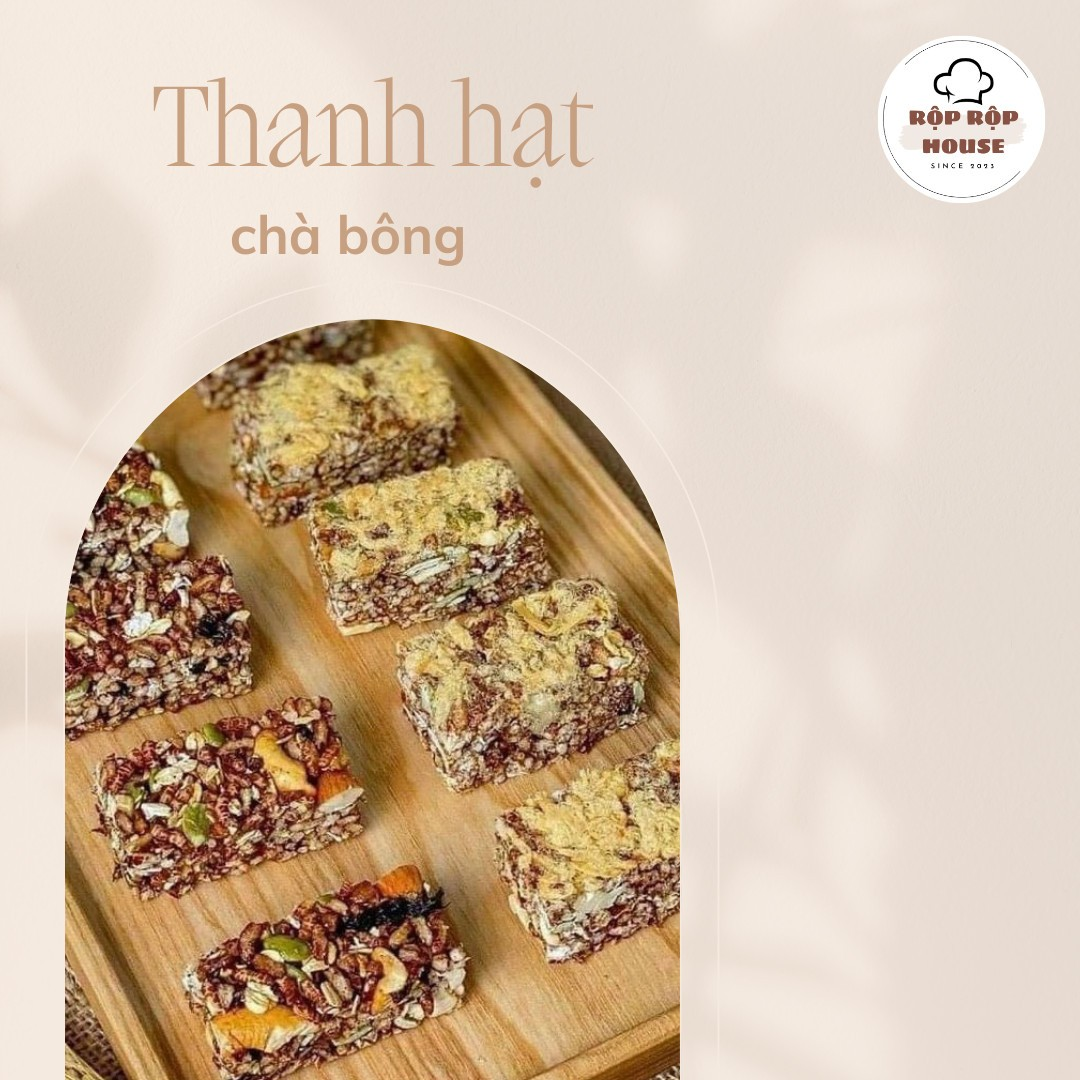 - Thành phần: gạo lứt, chà bông, hạnh nhân, yến mạch, hạt điều, hạt bí, đậu phộng.