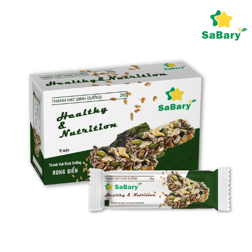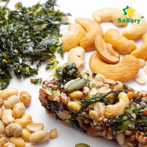 🍃THÀNH PHẦN: hạt điều, rong biển, gạo lứt, yến mạch, hạt bí, hạt dưa, đậu nành rang, mè đen, nha malto syrup, muối.
