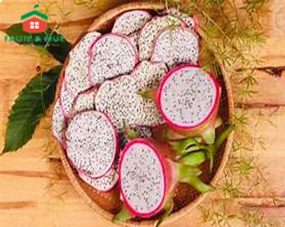 khi gọt vỏ, thanh long được cắt thành từng lát vừa phải.