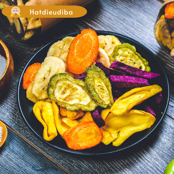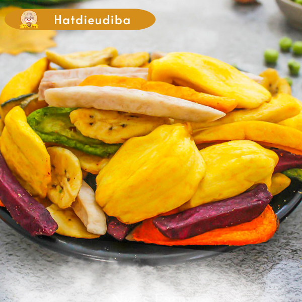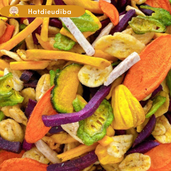 ✔ Thập cẩm sấy là một món ăn vặt phổ biến ở Việt Nam. Món ăn này được làm từ nhiều loại trái cây, rau củ, hạt và đậu được sấy khô để giảm hàm lượng nước. Thập cẩm sấy có hương vị thơm ngon, ngọt ngào và dễ ăn.
