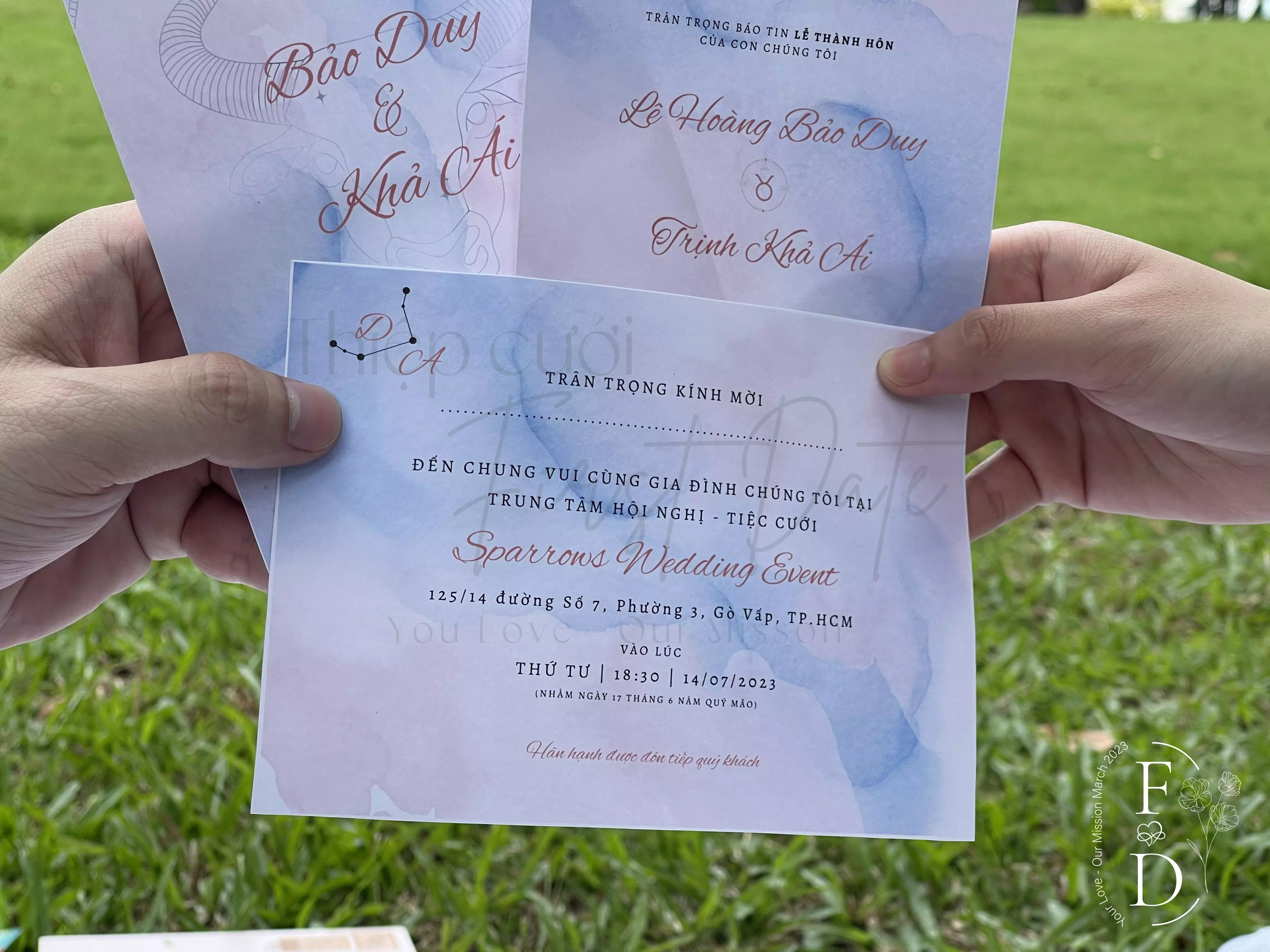 Các sản phẩm nhà First Date đều được thiết kế bằng công nghệ kỹ thuật số mới nhất hiện nay. Chất liệu giấy được tuyển chọn tốt nhất, mang đến trải nghiệm vô cùng sang trọng, cao cấp cho tấm thiệp của bạn.