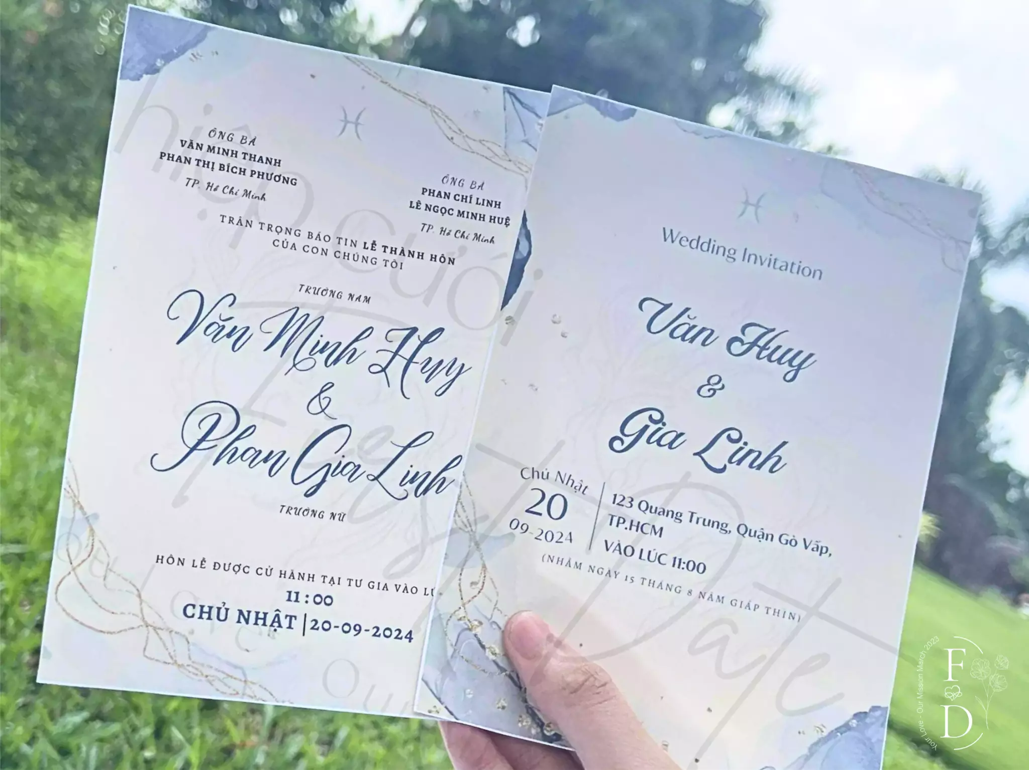 Các sản phẩm nhà First Date đều được thiết kế bằng công nghệ kỹ thuật số mới nhất hiện nay. Chất liệu giấy được tuyển chọn tốt nhất, mang đến trải nghiệm vô cùng sang trọng, cao cấp cho tấm thiệp của bạn.