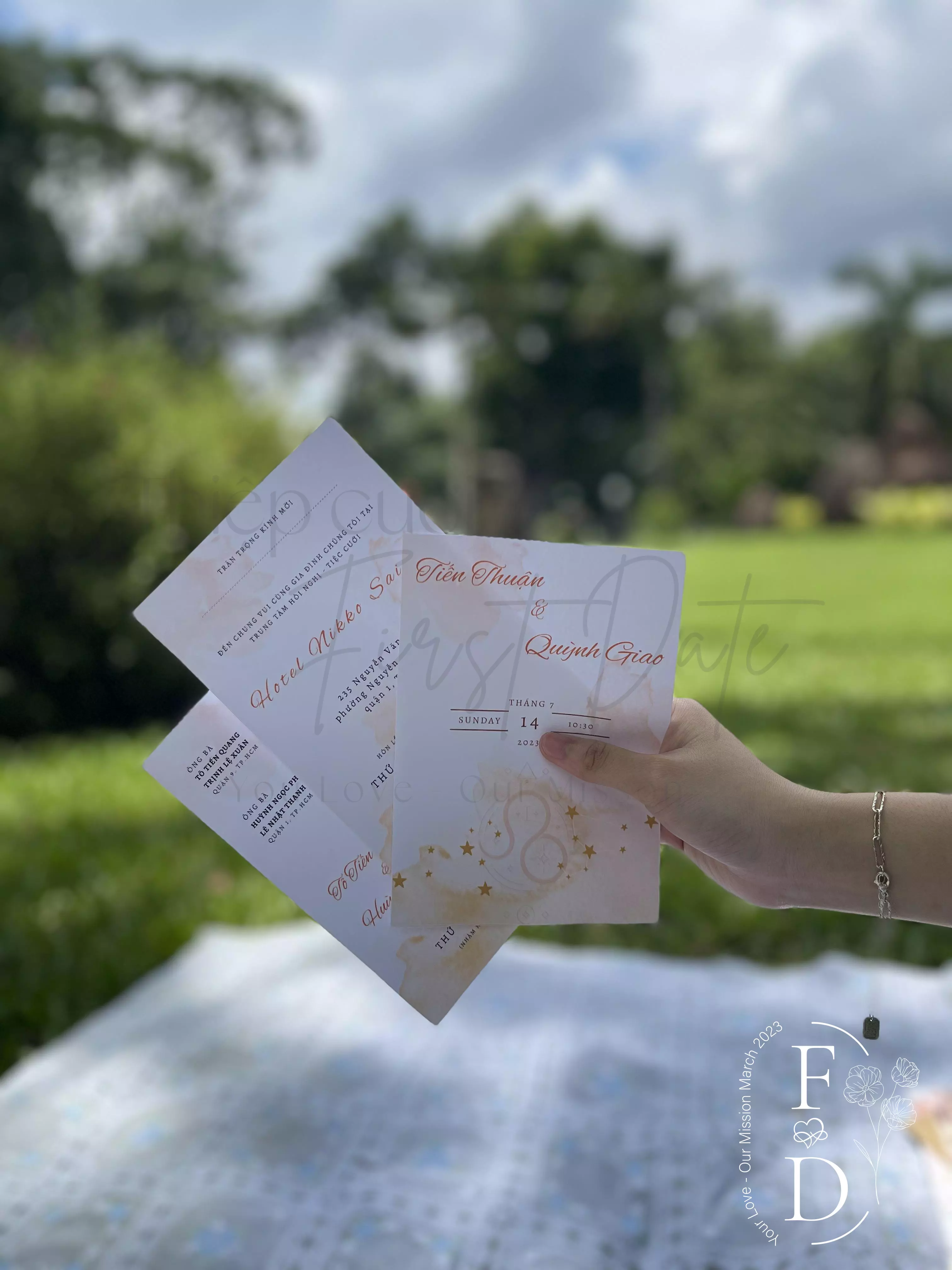 Các sản phẩm nhà First Date đều được thiết kế bằng công nghệ kỹ thuật số mới nhất hiện nay. Chất liệu giấy được tuyển chọn tốt nhất, mang đến trải nghiệm vô cùng sang trọng, cao cấp cho tấm thiệp của bạn.