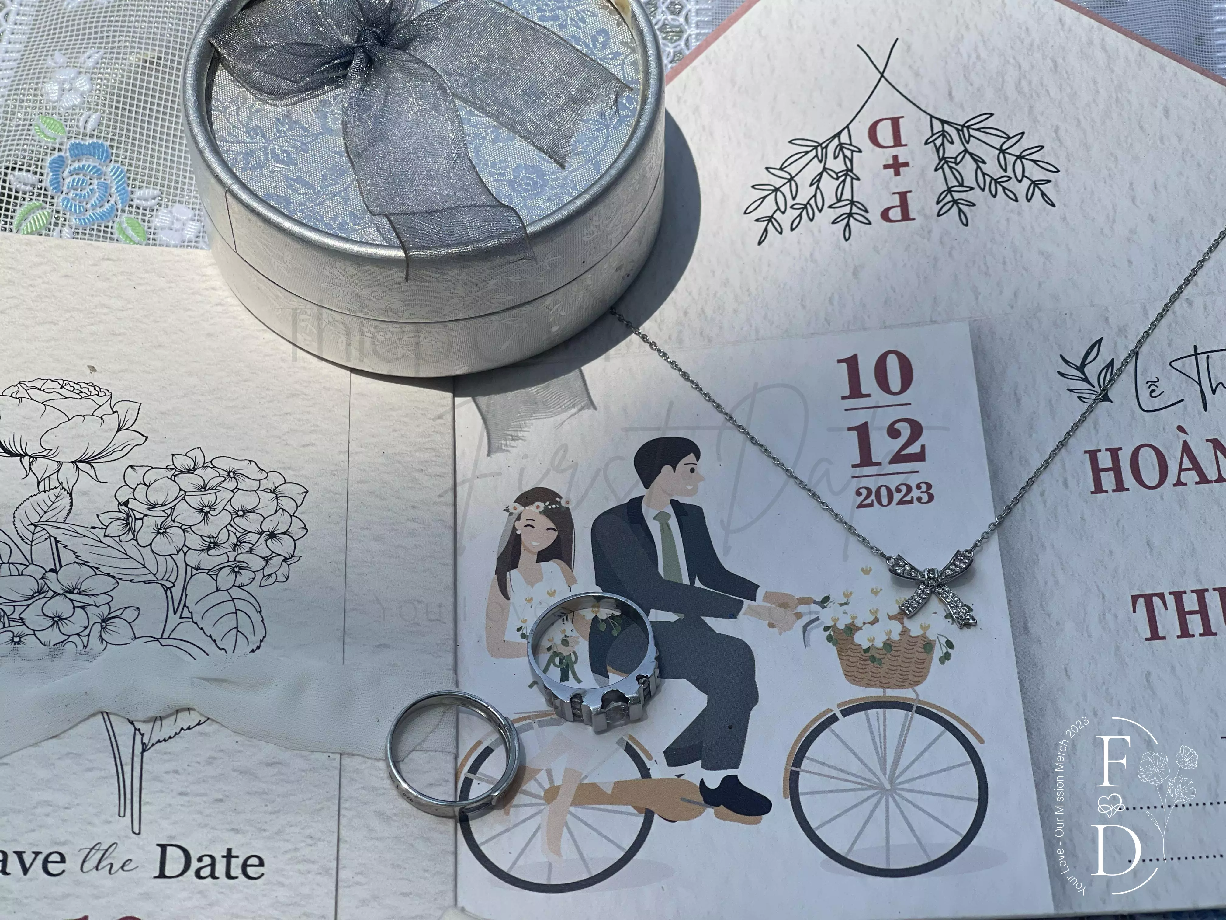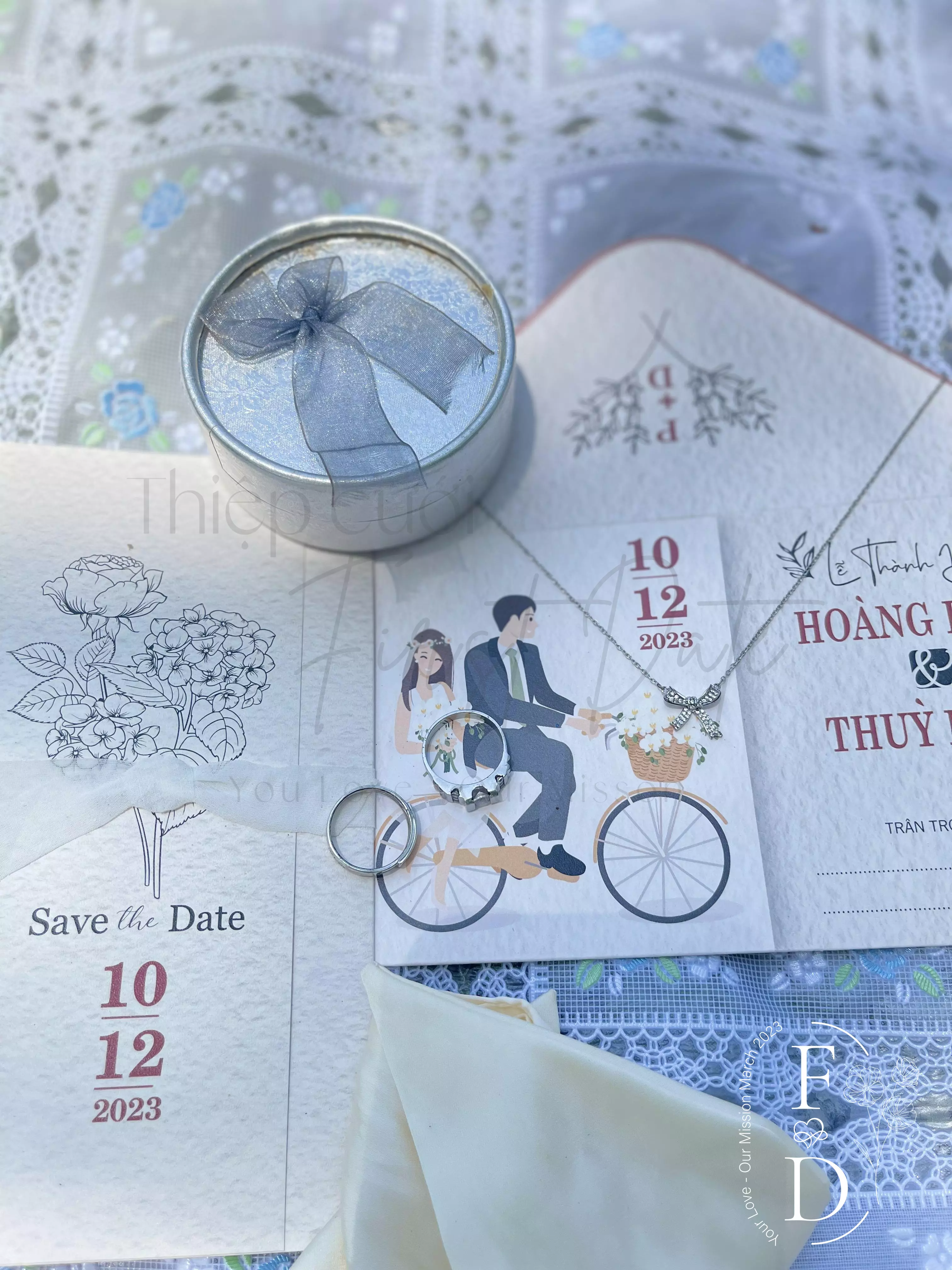 Thiệp First Date: thiết kế tinh tế, chuyên nghiệp, hoa văn, chữ cái, họa tiết trang trí đẹp mắt. Giấy chất lượng cao, sang trọng, đẳng cấp. Với thiệp cưới in ảnh của First Date, bạn có thể lưu giữ và chia sẻ những kỷ niệm đáng nhớ của ngày đầu tiên trong cuộc hôn nhân. Đây là một món quà tuyệt vời và độc đáo để tặng cho cặp đôi và để kỷ niệm những khoảnh khắc đáng nhớ trong hành trình tình yêu của họ.