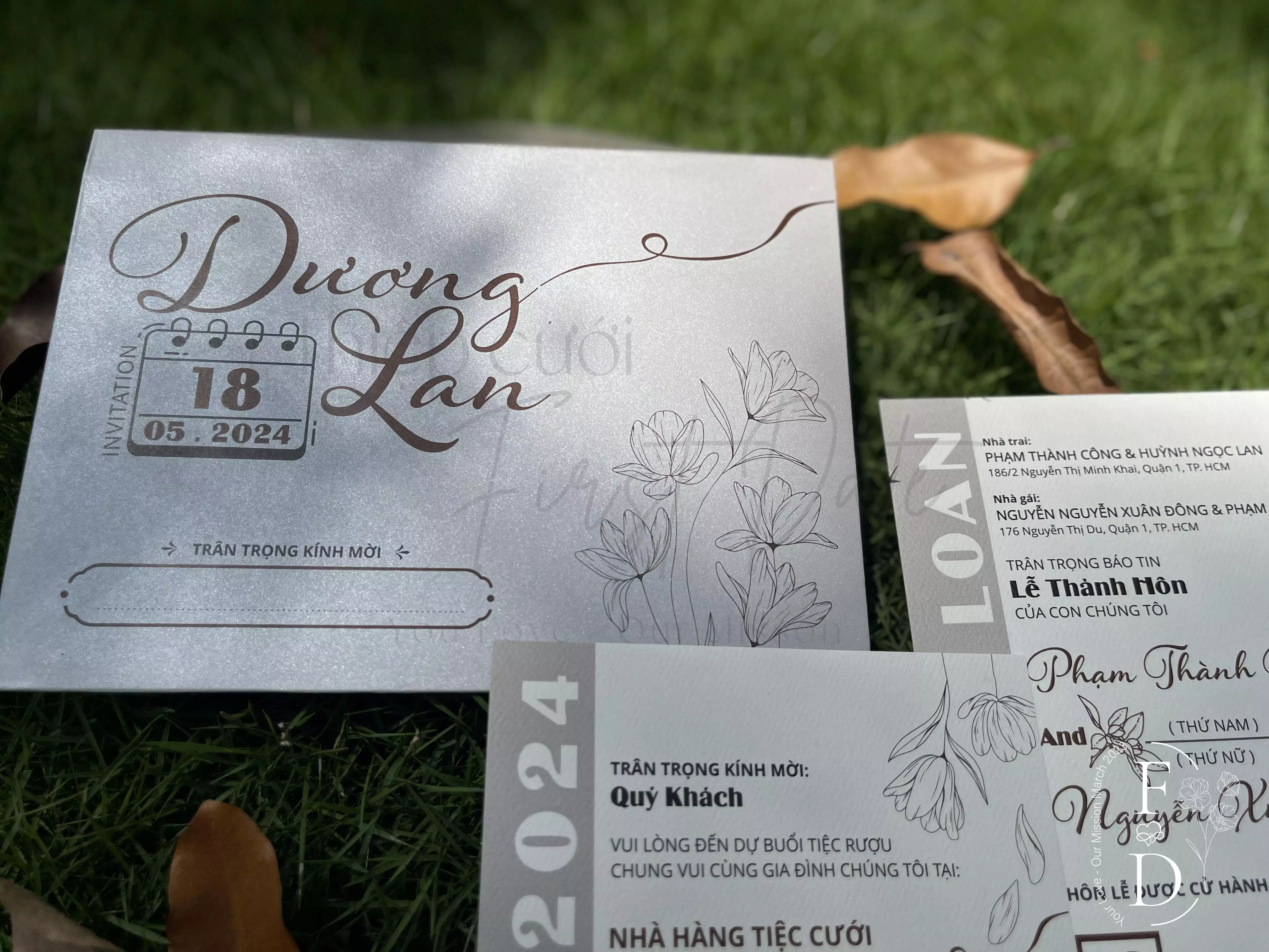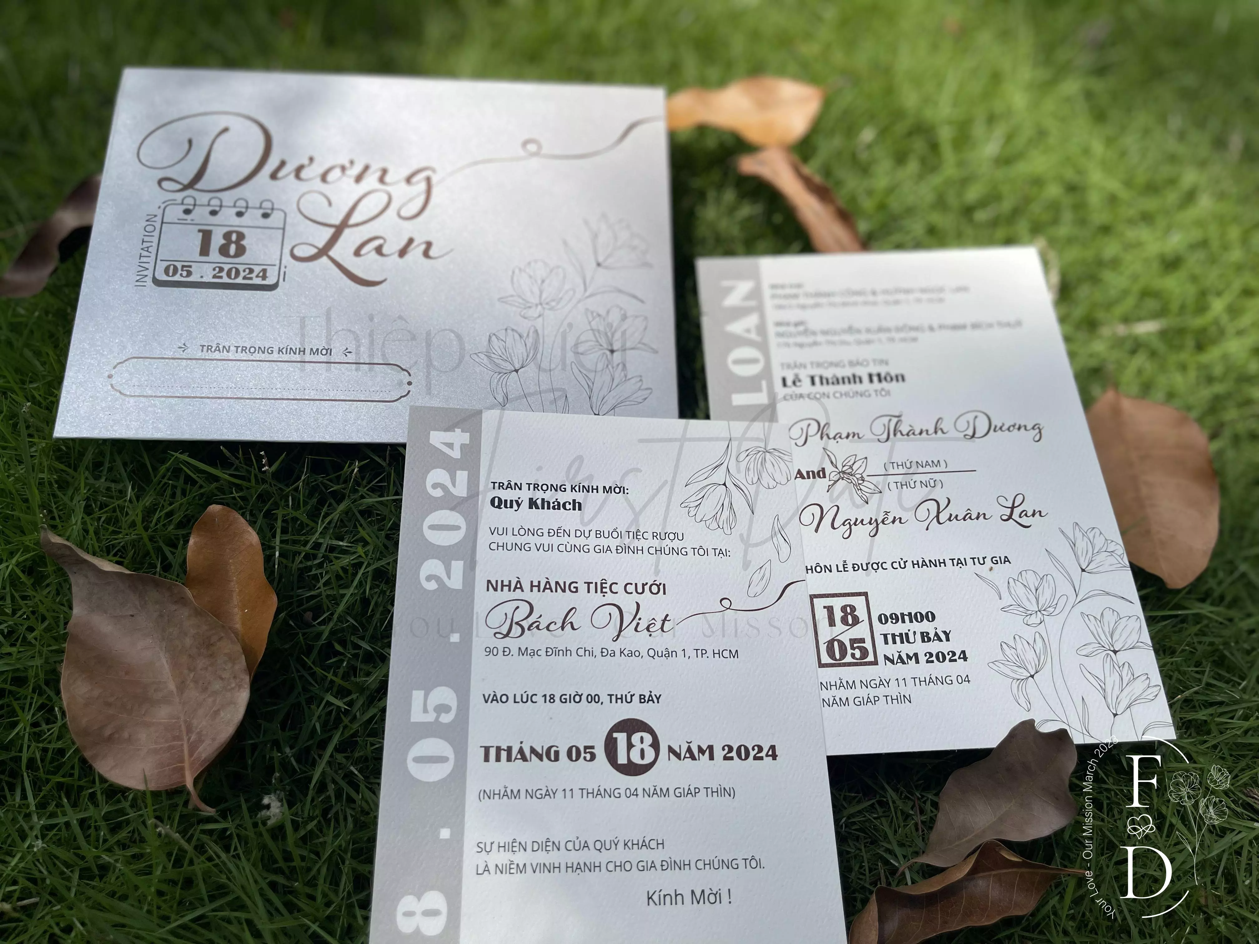 Thiệp cưới in hoa | DQ-BTN26-237 | Mẫu bao bạc nhũ giấy kem
