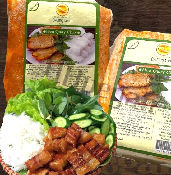 Thịt heo quay chay Green Meat có thành phần 100% được làm từ thực vật, bảo đảm an toàn vệ sinh thực phẩm, tốt cho sức khỏe người dùng. Sản phẩm có hình dáng như thịt heo quay mặn với hương vị chuẩn chay sẽ khiến các bạn mê ăn chay không thất vọng. Green Meat – Lối sống thuần chay rất hân hạnh được phục vụ quý khách hàng trong mọi bữa ăn hàng ngày.