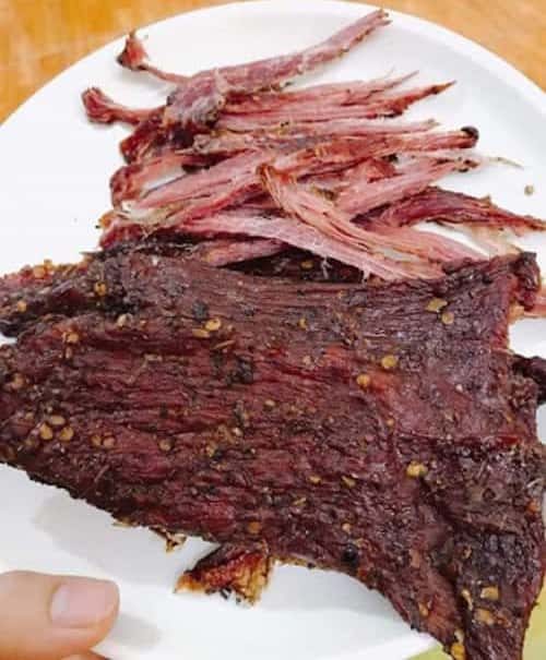 Thịt lợn sấy mang hương vị rất đặc trưng của vùng Tây Bắc, ăn vào có vị ngon khó tả, hương vị thuần nhất của thịt lợn khô nơi đây.