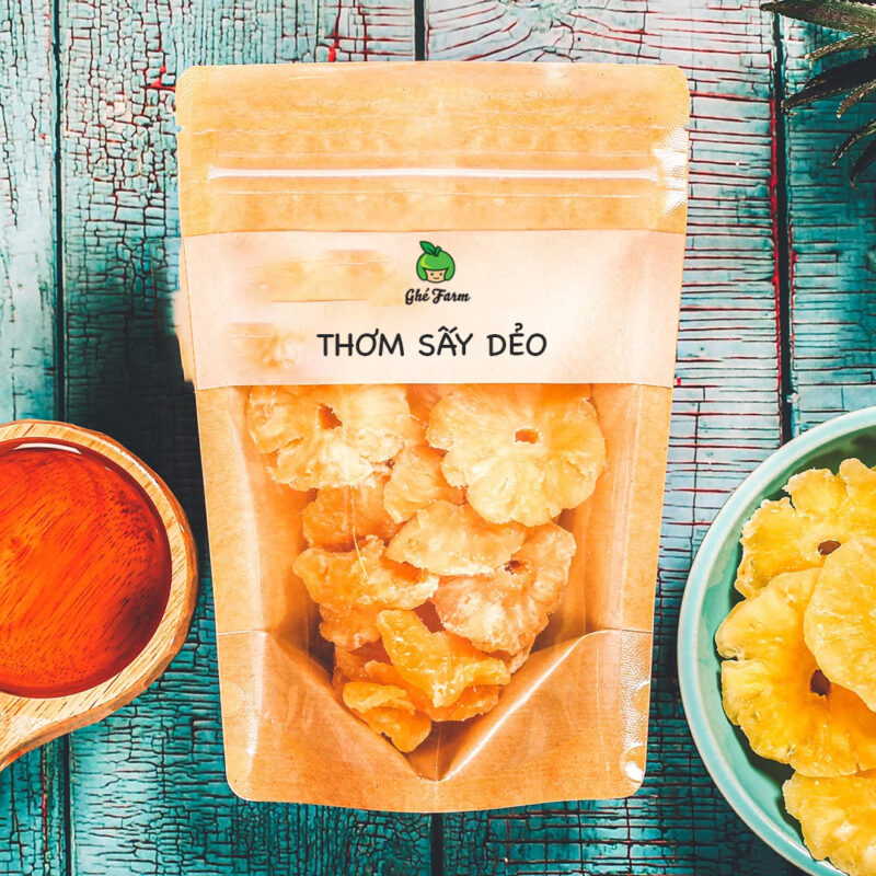 Tên sản phẩm: Thơm sấy dẻo, 225g, bịch, mẫu kraft 1 mặt trong