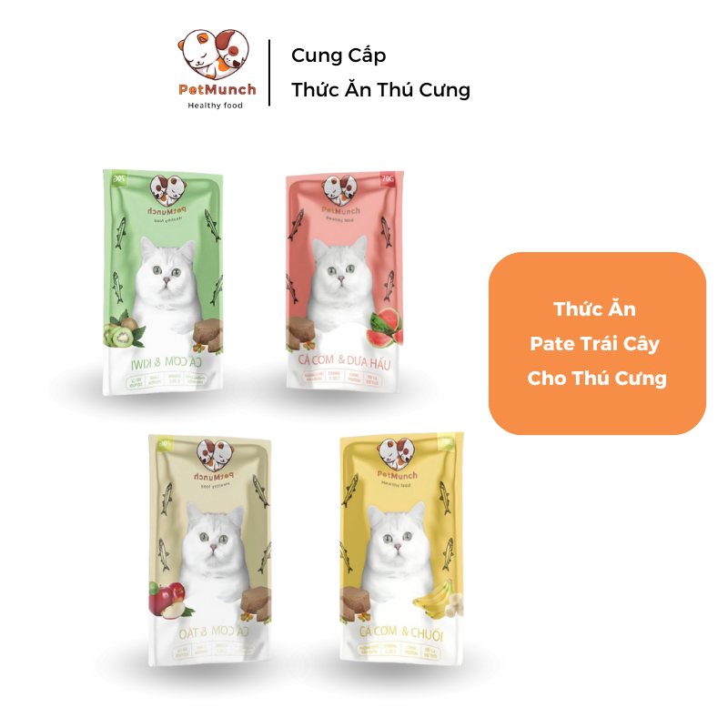 Thức ăn cho mèo PetMunch Pate Trái cây vị Cá cơm x Chuối 70gr