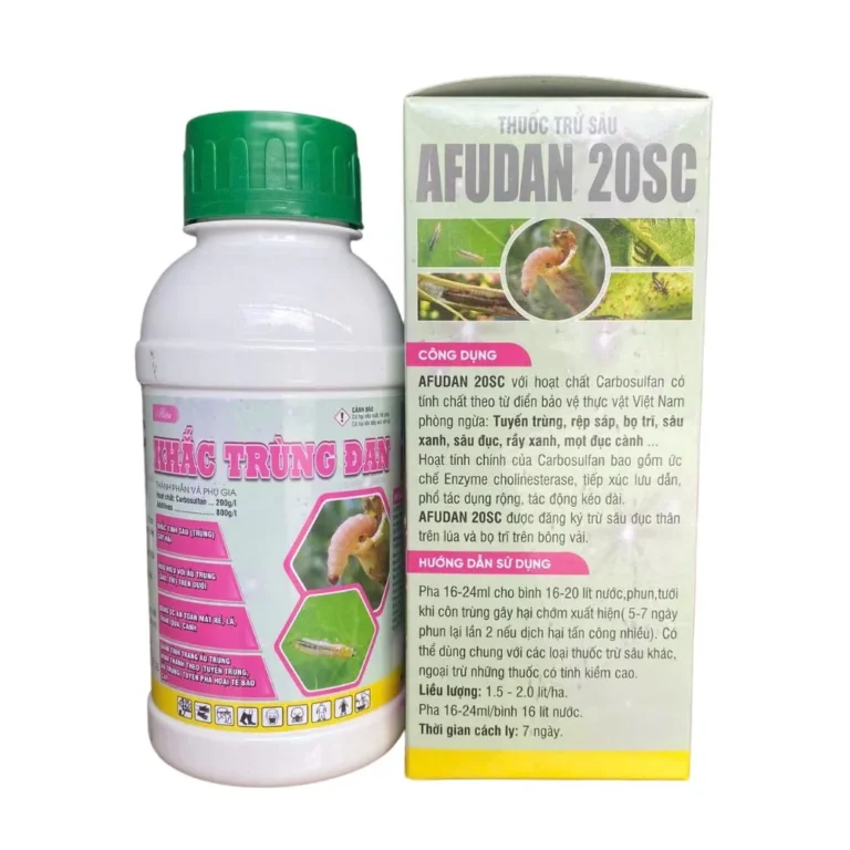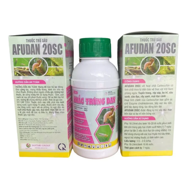 THUỐC TRỪ SÂU AFUDAN 20SC HIỆU KHẮC TRÙNG ĐAN với hoạt chất Carbosulfan có tính chất theo từ điển bảo vệ thực vật Việt Nam phòng ngừa: Tuyến trùng, rệp sáp, bọ trĩ, sâu xanh, sâu đục, rầy xanh, mọt đục cành,...